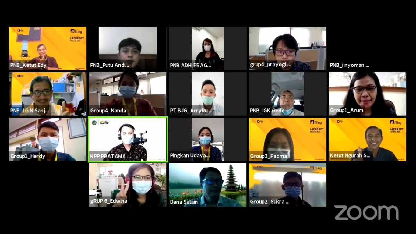 Kantor Pelayanan Pajak (KPP) Pratama Badung Selatan menggiatkan sosialisasi pelaporan SPT Tahunan Orang Pribadi Karyawan Melalui e-Filing kepada Duta Jaya Perkasa, Boga Jaen Gati, Karya Cipta Putera Pratama, dan Politeknik Negeri Bali melalui Aplikasi Zoom Meeting, di Bali (Selasa, 9/3).