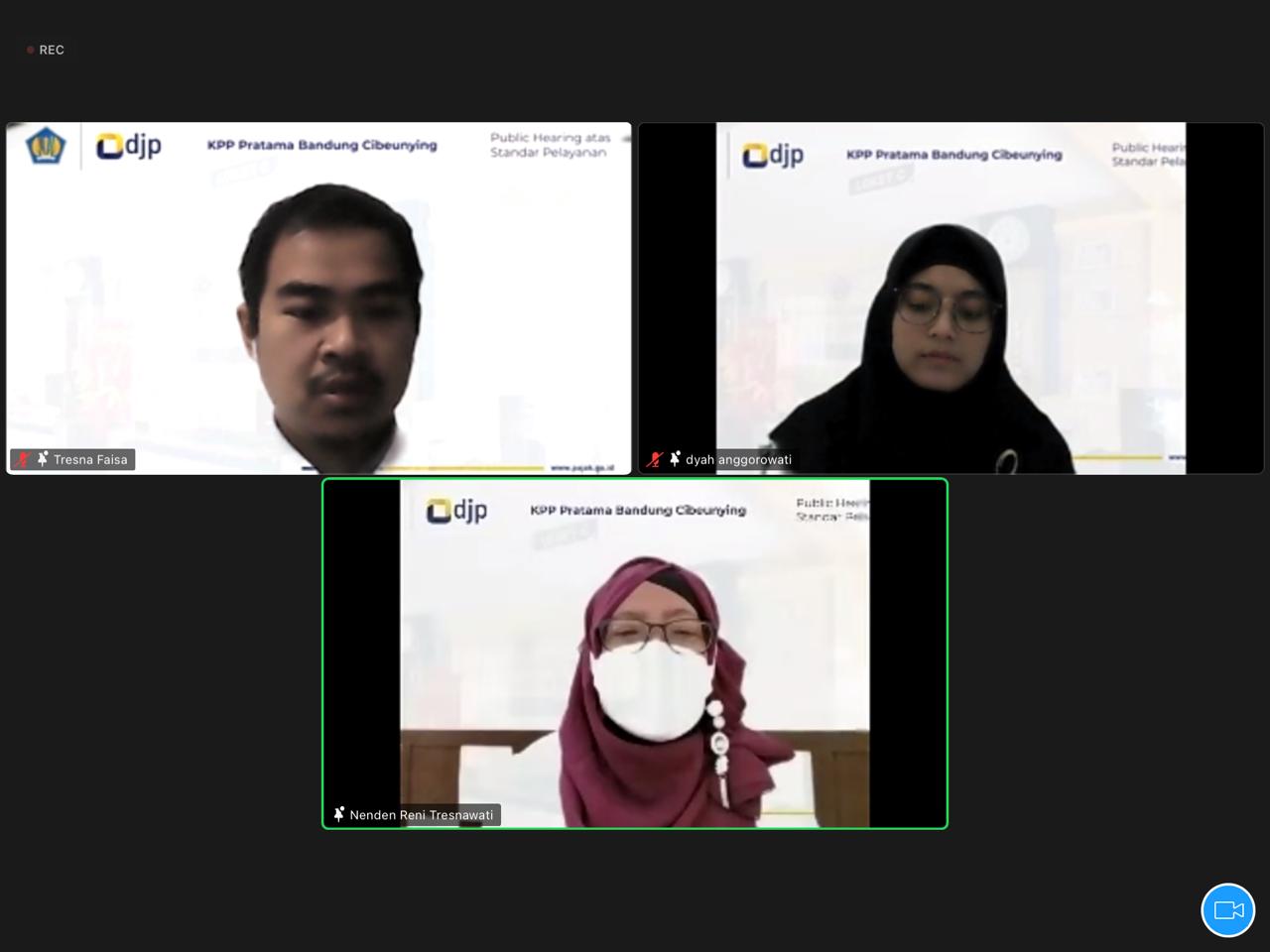 Kegiatan dilaksanakan mulai pukul 10.00 WIB s.d 11.30 WIB dan diikuti oleh 76 (tujuh puluh enam) peserta yang terdiri dari Wajib Pajak Perwakilan Dunia Usaha, Instansi Pemerintah, Tokoh Masyarakat, Akademisi, dan Lembaga Swadaya Masyarakat (LSM). Kegiatan Public Hearing diawali dengan sambutan dari Kepala Kantor Pelayanan Pajak Bandung Cibeunying Rustana Muhammad Mulud Asroem, kemudian dilanjutkan dengan pemaparan standar pelayanan oleh Nenden Reni Tresnawati selaku Kepala Seksi Pelayanan.