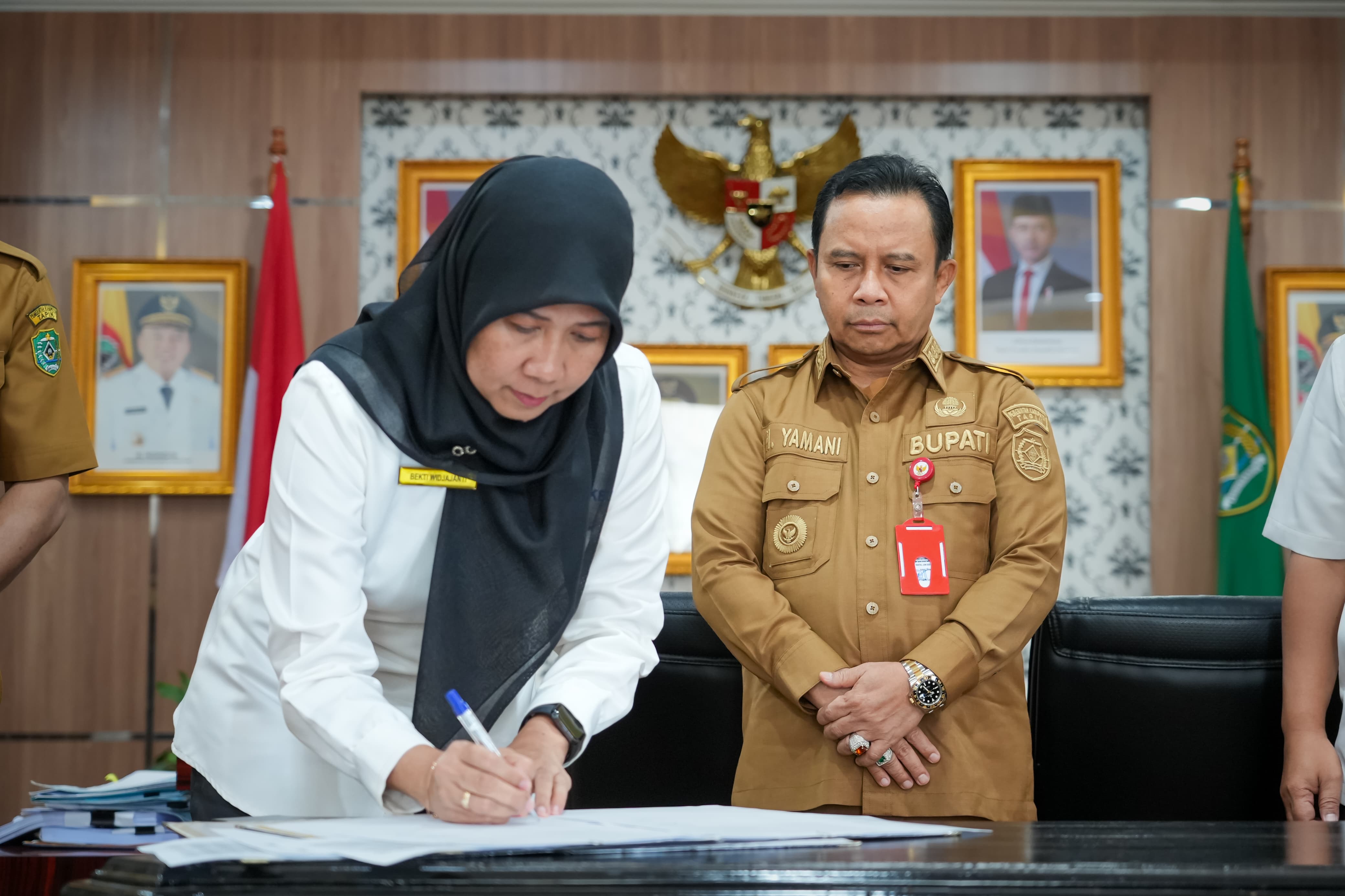 Penandatanganan tersebut dihadiri oleh Bupati Tapin, H. Yamani, S.Ak., M.M.; Kepala KPP Pratama Barabai, Bekti Widjajanti; Kepala KPPN Tipe A1 Barabai, Djoko Julianto; Kepala BKAD Tapin, Haris Fadillah; serta sejumlah pejabat instansi terkait lainnya.