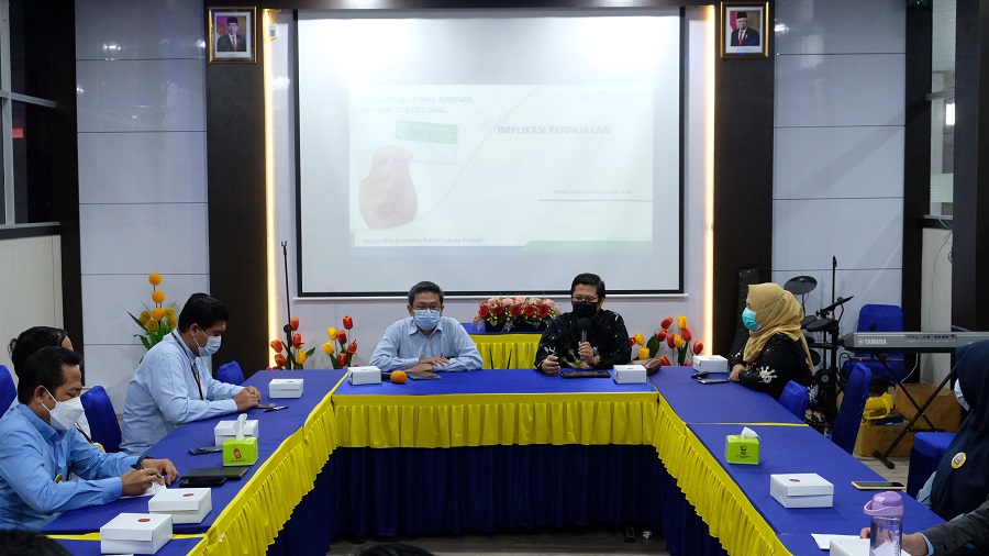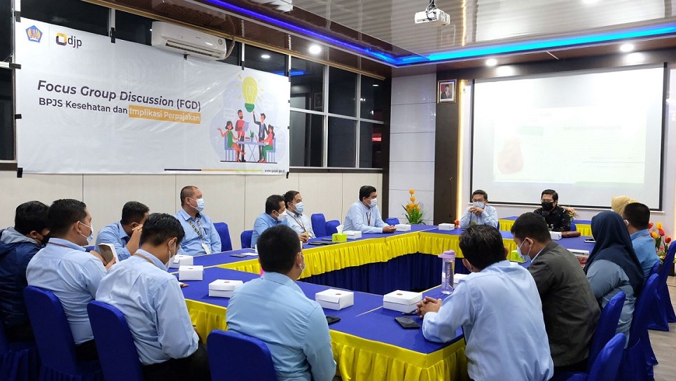 Kantor Pelayanan Pajak (KPP) Pratama Baubau menggelar Forum Group Discussion (FGD) Implikasi Perpajakan bersama Badan Penyelenggaran Jaminan Sosial (BPJS) Kesehatan Kota Baubau yang dilaksanakan secara luring di aula lantai 2 KPP Pratama Baubau (Rabu, 26/1).