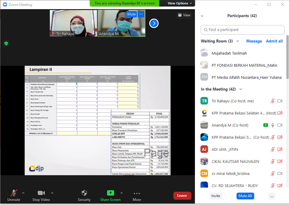 Kantor Pelayanan Pajak (KPP) Pratama Bekasi Selatan mengadakan kelas pajak secara daring di Ruang Rapat KPP Pratama Bekasi Selatan, Bekasi (Rabu, 21/4). Acara dihadiri oleh 35 wajib pajak dan dipandu langsung oleh Tim Penyuluh Pajak KPP Pratama Bekasi Selatan.