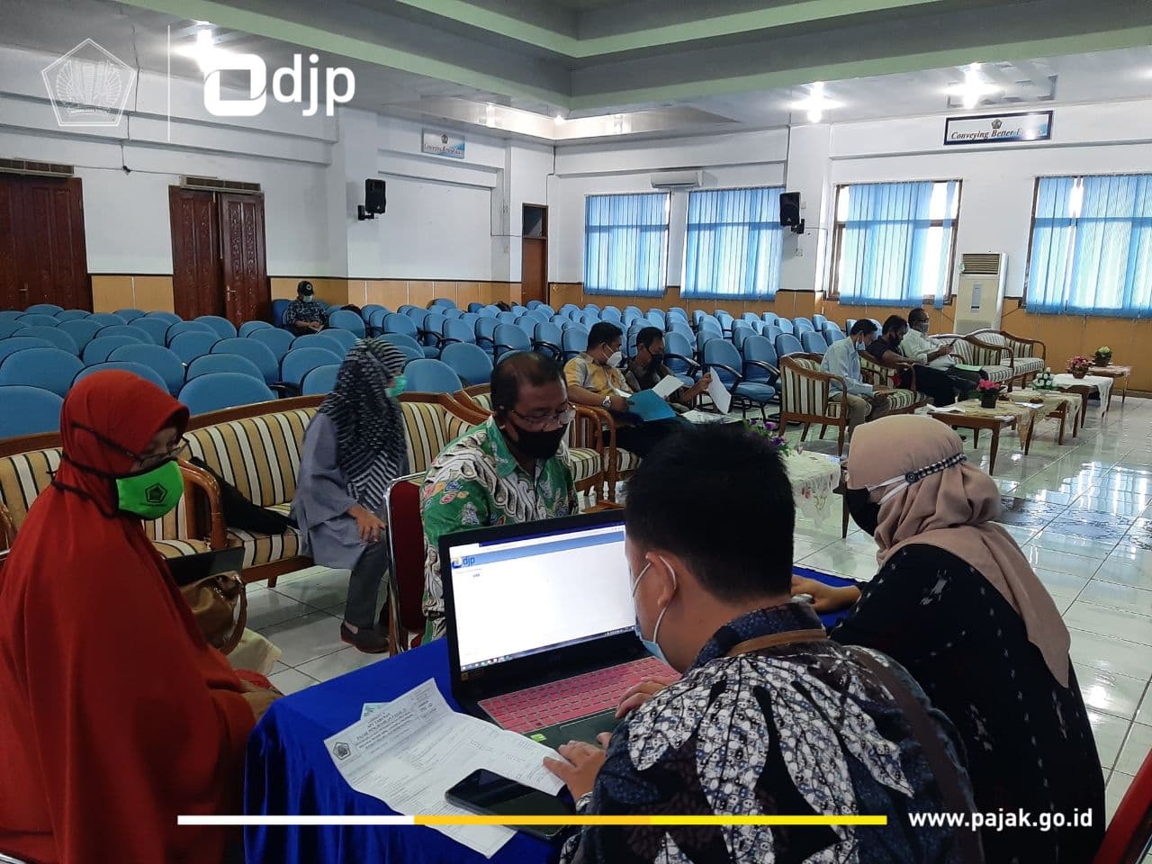 Kegiatan yang berlangsung mulai pukul 09.00 s.d. 15.00 WIB tersebut dilaksanakan untuk memfasilitasi pegawai Universitas Bengkulu (UNIB) yang belum menyampaikan pelaporan SPT Tahunan secara daring melalui e-Filing pada laman djponline.pajak.go.id.