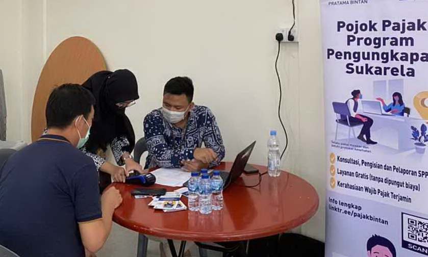 Kantor Pelayanan Pajak (KPP) Pratama Bintan bekerja sama dengan Yayasan Dharma Sasana Kijang dan Persatuan Umat Buddha Indonesia (Permabudhi) Bintan membuka layanan pojok pajak di Vihara Dharma Sasana, Kijang Kota, Bintan Timur, Bintan, Kepulauan Riau (Selasa, 14/6). Kegiatan ini merupakan respon KPP Bintan atas semakin tingginya animo wajib pajak yang ingin mengikuti PPS, namun terkendala waktu dan pengetahuan. Pojok pajak digelar di ruang pertemuan Vihara Dharma Sasana mulai pukul 09.00 hingga 16.00 WIB.