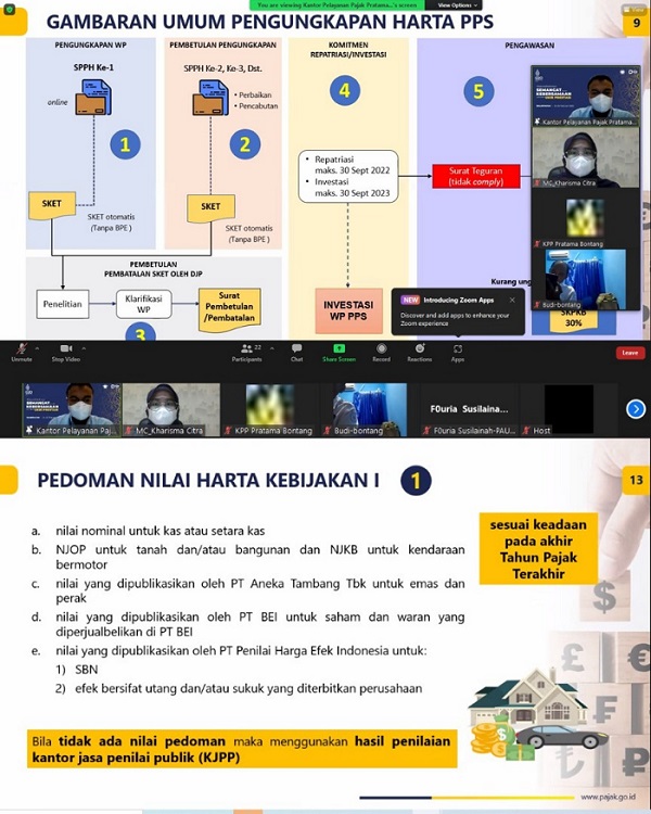Kantor Pelayanan Pajak (KPP) Pratama Bontang mengajak nasabah prioritas BPD Kaltimtara cabang Bontang untuk memanfaatkan fasilitas Program Pengungkapan Sukarela (PPS) yang menjadi program Direktorat Jenderal Pajak (DJP) tahun 2022 melalui Zoom Cloud Meetings di Kota Bontang (Rabu, 9/3).