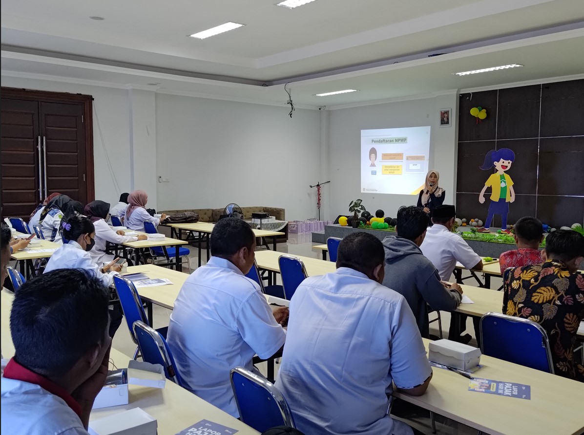 Kantor Pelayanan Pajak (KPP) Pratama Bontang dan Kantor Pelayanan, Penyuluhan, dan Konsultasi Perpajakan (KP2KP) Sangatta menggelar acara sosialisasi Peraturan Pemerintah Nomor 58 Tahun 2023 dan Bimbingan Teknis SPT Tahunan di Gedung CU Mitra Mandiri, Kecamatan Muara Wahau, Kabupaten Kutai Timur (Rabu, 10/01).