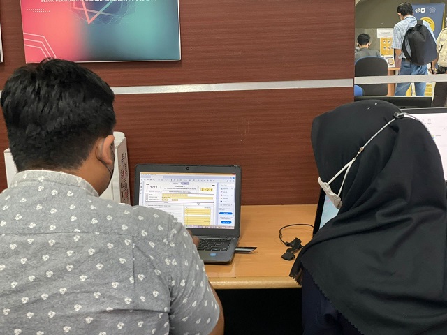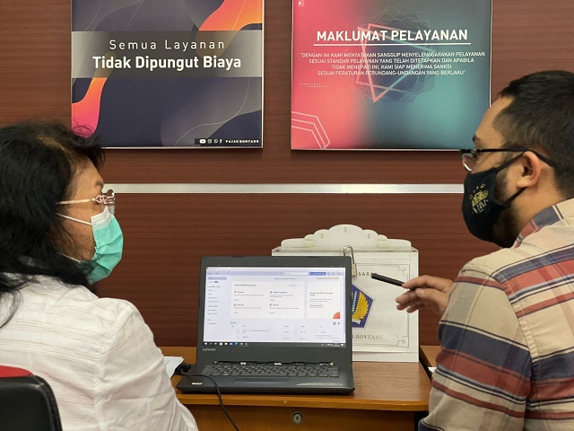 Asistensi diberikan kepada beberapa Wajib Pajak yang datang langsung ke KPP untuk melakukan konsultasi dan asistensi penyampaian SPT Tahunan 1771 melalui e-Form.