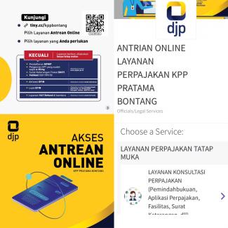 Layanan antrean online ini diterapkan khusus untuk wajib pajak yang ingin berkonsultasi secara tatap muka. Cara mengakses layanan ini cukup mudah cukup dengan mengakses alamat tiny.cc/kppbontang atau memindai barcode yang telah disediakan pada setiap media sosial KPP Bontang. Setelah mengakses, wajib pajak dapat memilih tanggal dan jam sesuai kebutuhan wajib pajak. Setelah berhasil mengajukan permohonan antrean, wajib pajak dapat melakukan menangkap layar antreannya.