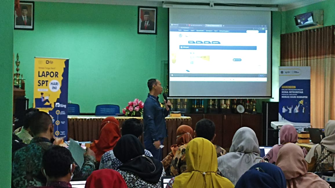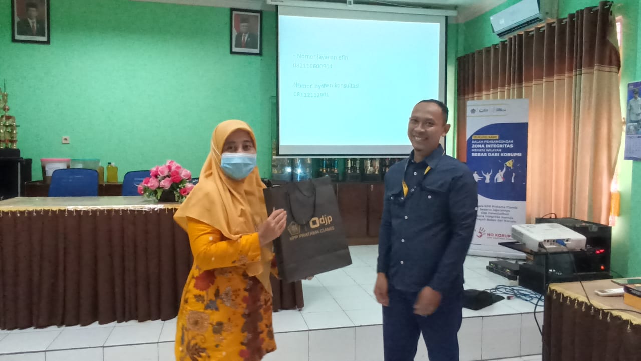 Kantor Pelayanan Pajak (KPP) Pratama Ciamis menggelar sosialisasi pengisian SPT Tahunan PPh Orang Pribadi dan pemadanan data mandiri NIK sebagai NPWP bagi Aparatur Sipil Negara (ASN) pada seluruh puskesmas Kabupaten Ciamis di Dinas Kesehatan Kabupaten Ciamis (Kamis, 21/2). Sebanyak 75 orang yang terdiri dari Kepala Subbagian Tata Usaha dan operator mengikuti kegiatan ini sebagai wakil dari puskesmas.