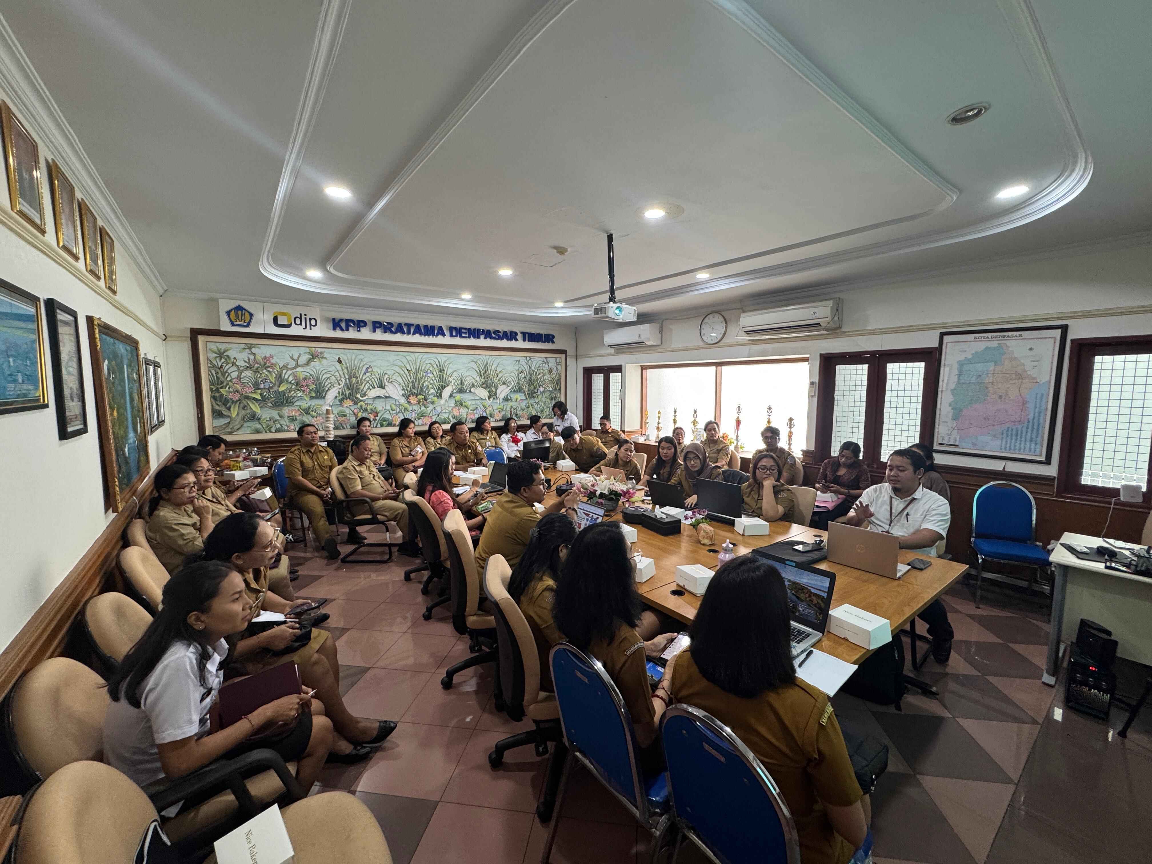 Kantor Pelayanan Pajak (KPP) Pratama Denpasar Timur kembali mengadakan bimbingan teknis (bimtek) Coretax DJP khusus bagi para bendahara pemerintah, khususnya di lingkungan Pemerintah Provinsi Bali. Bimtek berlangsung di Ruang Rapat KPP Pratama Denpasar Timur, GKN II, Jalan Tantular No. 4, Dangin Puri Klod, Kota Denpasar (Senin, 22/8).