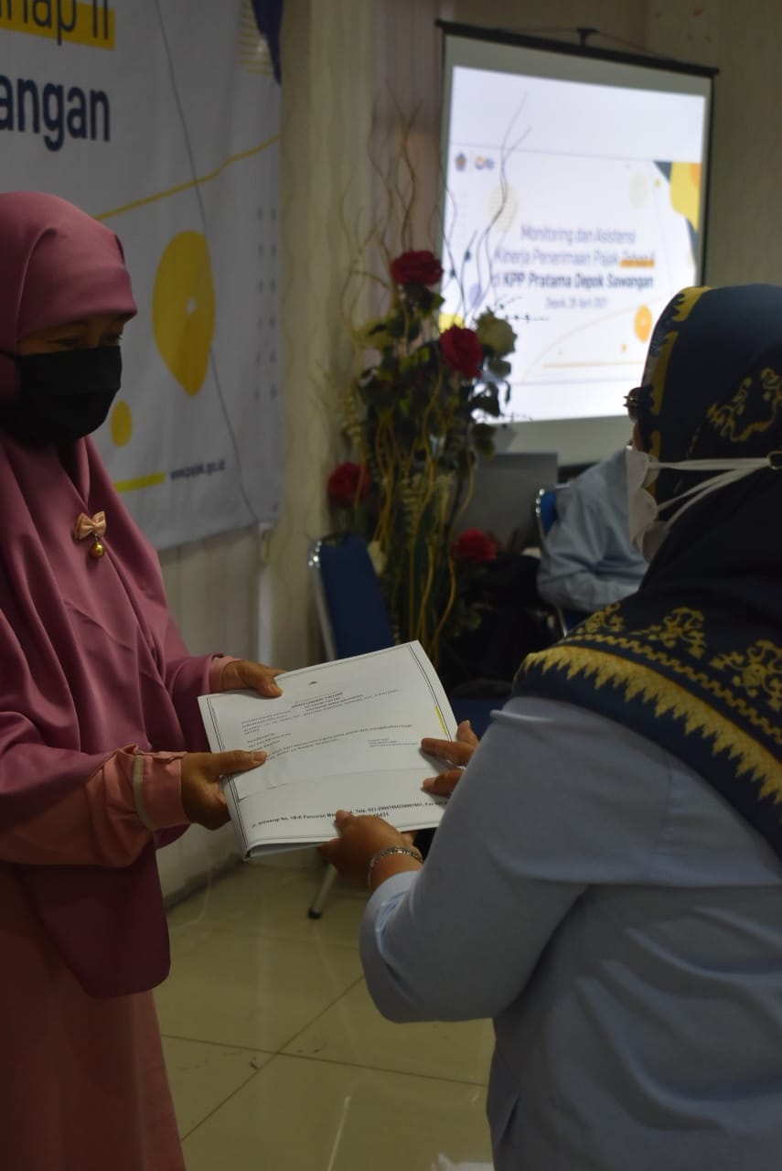 Kantor Pelayanan Pajak (KPP) Pratama Depok Sawangan bagikan paket santunan berupa bahan makanan pokok dan uang tunai kepada 55 anak yatim dan duafa. Santunan diberikan kepada Yayasan Bina Salamah dan Yayasan El Fatih Ottoman yang berada di Kota Depok. Santunan diberikan oleh Kepala Kantor Wilayah Direktorat Jenderal Pajak (Kanwil DJP) Jawa Barat III Catur Rini Widosari usai kegiatan monitoring dan evaluasi di Ruang Rapat KPP Pratama Depok Sawangan, Depok (Kamis, 6/5). Santunan yang dibagikan berasal dari donasi oleh pegawai KPP Pratama Depok Sawangan.
