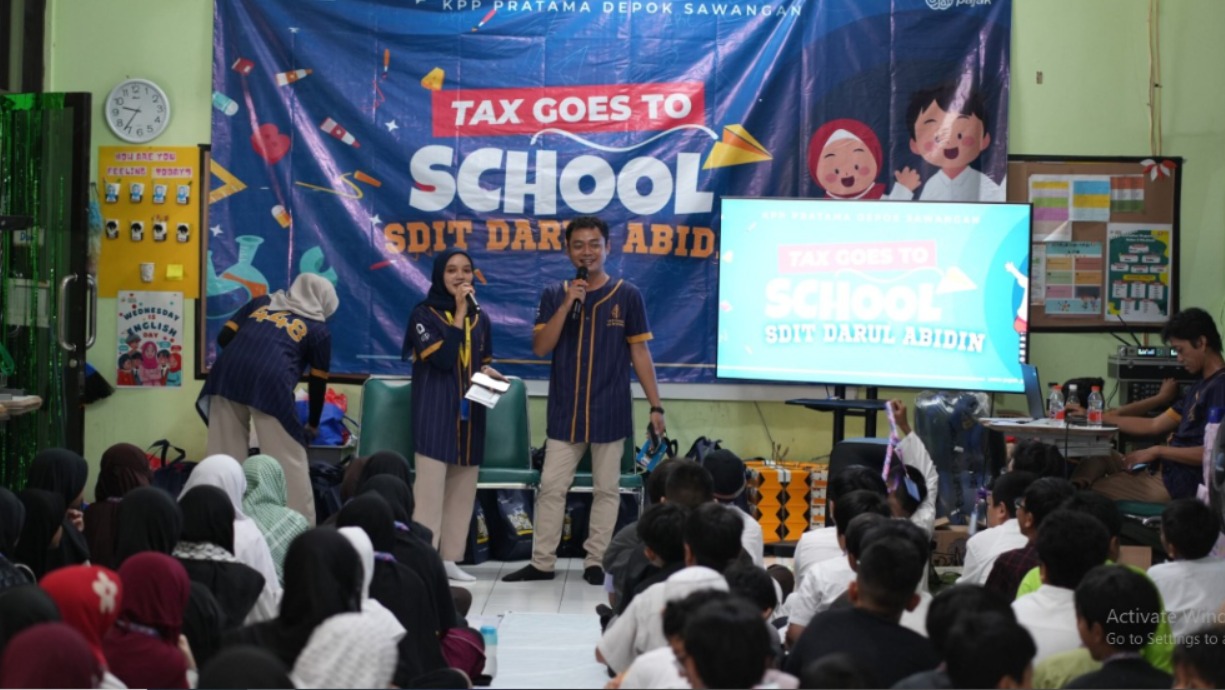 Sekolah Dasar Islam Terpadu (SDIT) Darul Abidin menjadi mitra pelaksanaan kegiatan edukasi Tax Goes To School (TGTS) yang diselenggarakan Kantor Pelayanan Pajak (KPP) Pratama Depok Sawangan di Kota Depok (Rabu, 23/10). Tax goes to school kali ini diikuti oleh 83 siswa kelas 6.