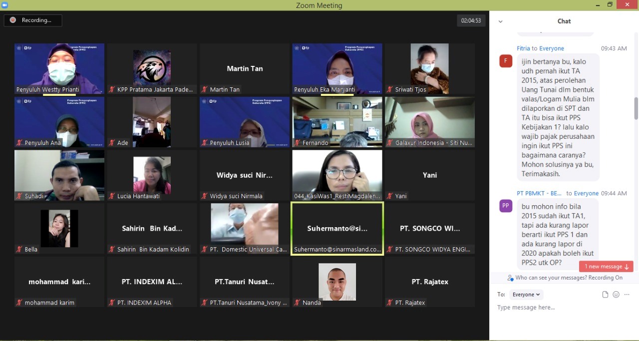 Kantor Pelayanan Pajak (KPP) Pratama Jakarta Pademangan mengadakan kelas kajak Program Pengungkapan Sukarela (PPS) (Rabu,12/1). Kegiatan diselenggarakan melalui Zoom Meeting di ruang penyuluh KPP Pratama Jakarta Pademangan, dihadiri 80 Wajib Pajak Orang Pribadi dan Wajib Pajak Badan.