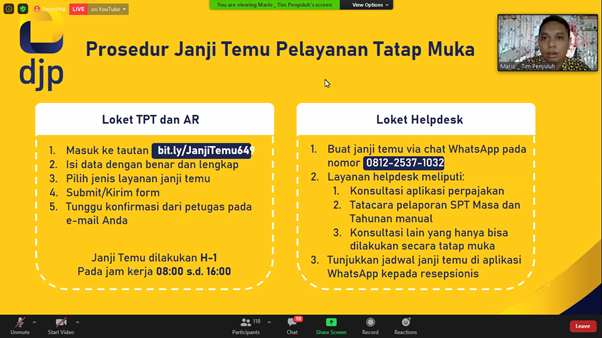 Kantor Pelayanan Pajak (KPP) Pratama Jombang bekerja sama dengan Tax Center Dewantara dan Universitas Binaniaga Indonesia mengadakan Webinar Nasional dengan tema "Mekanisme Penyusunan, Perhitungan, dan Pelaporan Pajak UMKM" di Jombang (Sabtu, 18/7). Dua pegawai KPP Pratama Jombang menjadi pemateri dalam webinar ini. Kegiatan ini diikuti oleh kalangan mahasiswa dan pegiat UMKM.
