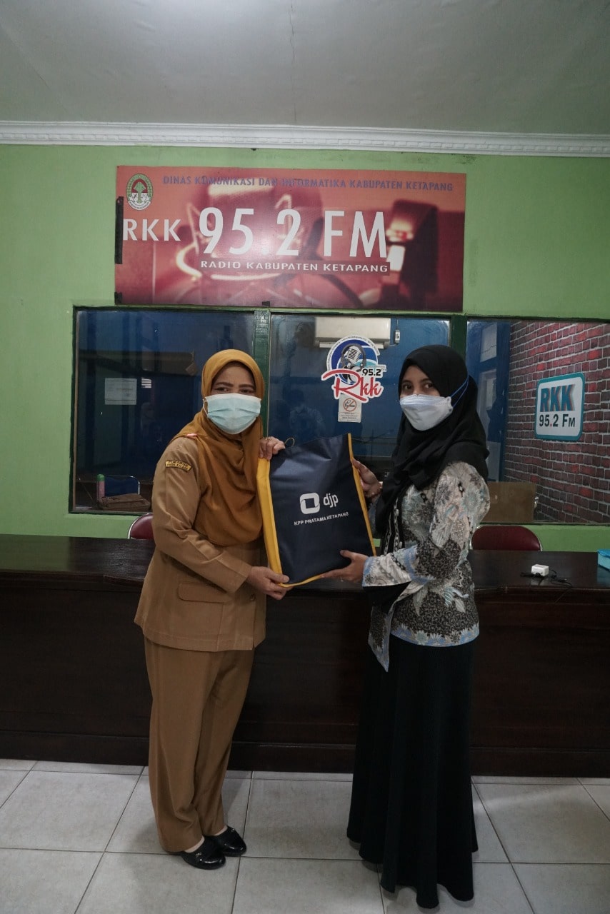 Kepala Seksi Pelayanan Yulia Rahmawati dan Fungsional Penyuluh Pajak Arian Ngesti KPP Pratama Ketapang berkesempatan menjadi narasumber dalam kegiatan gelar wicara (talkshow) di Radio Kabupaten Ketapang (RKK) 95.2 FM Kabupaten Ketapang (Rabu, 4/10).
