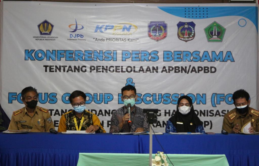 Kepala KPP Pratama Kolaka menghadiri Konferensi Pers bersama tentang Pengelolaan APBN/APBD dan Focus Group Discussion (FGD) tentang Undang-Undang Harmonisasi Peraturan Perpajakan (HPP) di KPPN Kolaka (Selasa, 26/10).