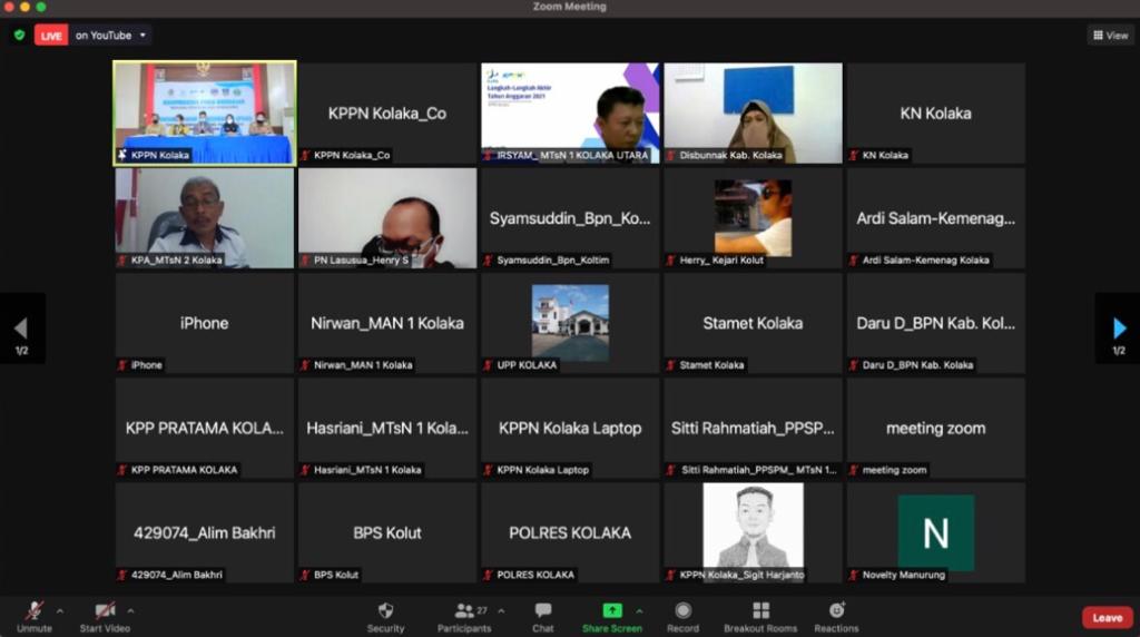 Kegiatan diikuti oleh sejumlah bendahara seluruh satker Pemda Kolaka, Kolaka Utara, Kolaka Timur serta wartawan media massa. Kegiatan yang disiarkan secara daring melalui Aplikasi Zoom Meeting ini menghadirkan 5 (lima) narasumber dari masing-masing unit, yaitu KPP Pratama Kolaka, KPPN Kolaka, Pemerintah Daerah Kolaka, Pemerintah Daerah Kolaka Timur serta Pemerintah Daerah Kolaka Utara.