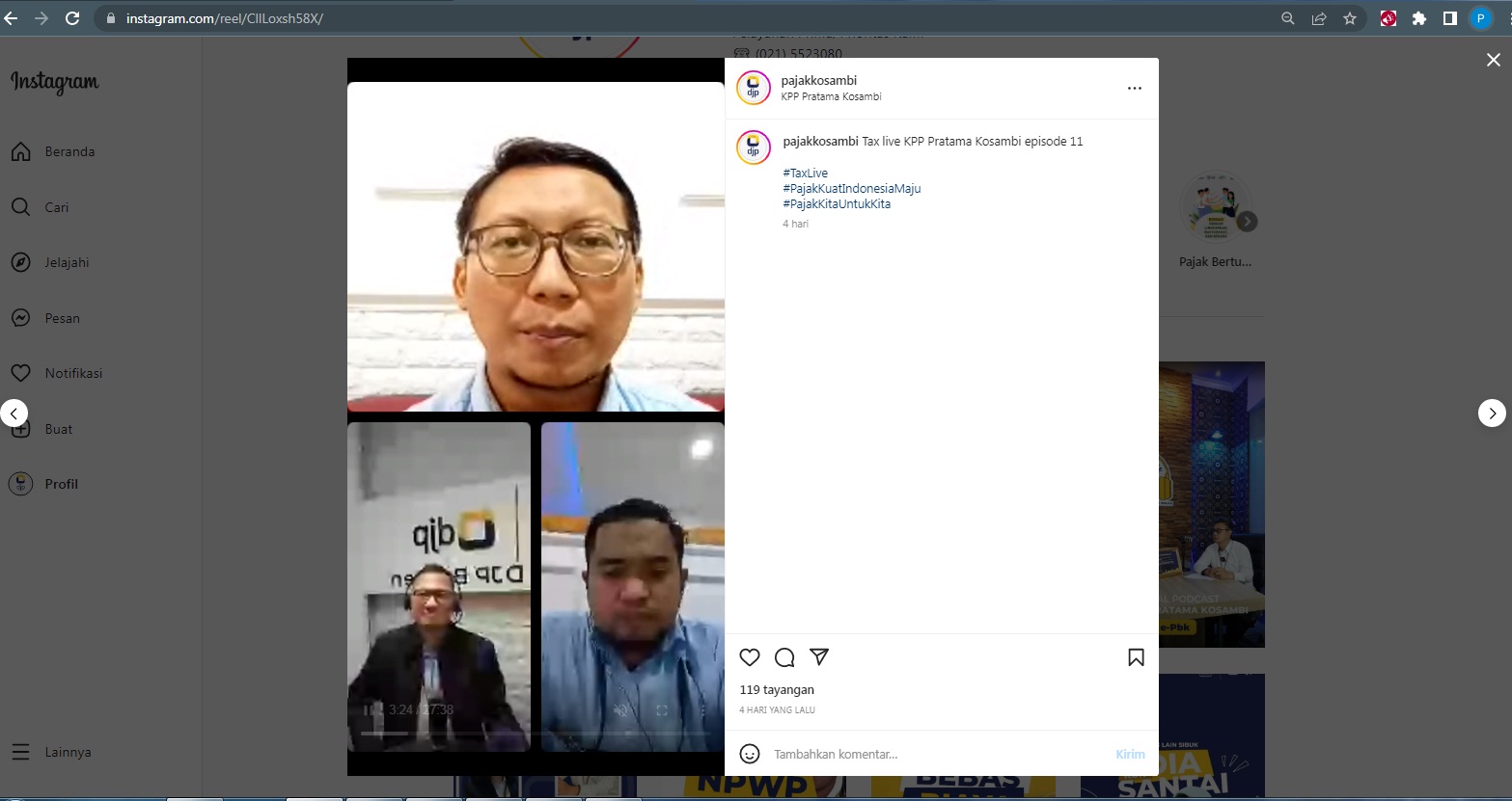 Kantor Pelayanan Pajak (KPP) Pratama Kosambi menyelenggarakan edukasi pajak secara langsung (live) melalui platform media sosial Instagram @pajakkosambi di Kabupaten Tangerang (Rabu, 1/12).