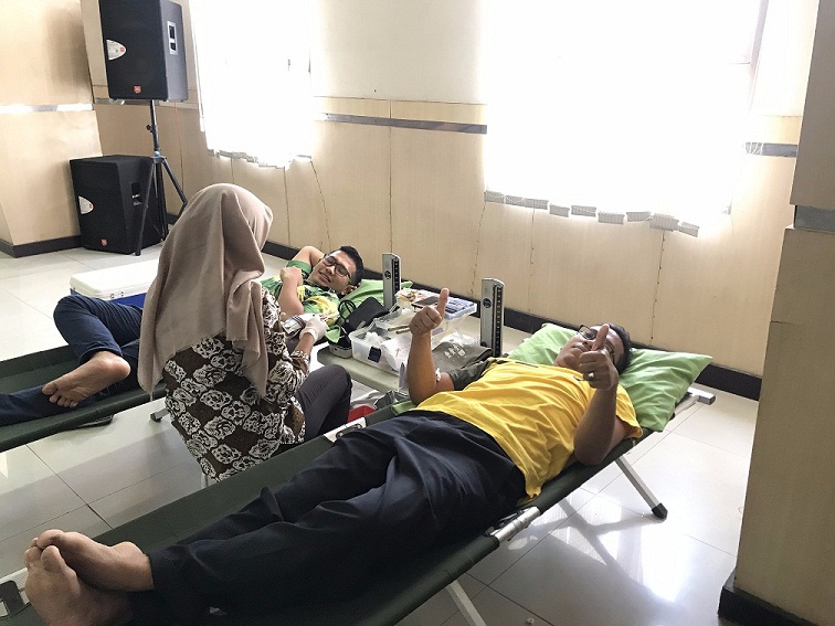 Donor darah diikuti segenap pegawai baik organik maupun non organik. Ada beberapa tahapan yang harus dilalui para calon pendonor yaitu mengisi formulir pendaftaran dan menyertakan kartu donor (apabila ada) kemudian dilanjutkan dengan pengecekan berat badan, tekanan darah, hemoglobin (HB), serta golongan darah. Tak kurang dari 22 pegawai tercatat dalam daftar registrasi peserta donor.