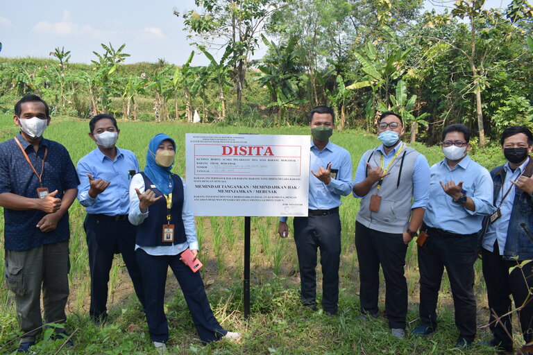 Juru Sita Pajak Negara (JSPN) KPP Madya Dua Semarang dan KPP Pratama Karanganyar berkoordinasi dalam melakukan penyitaan terhadap aset PT SMP atas tunggakan pajak yang belum terbayar berupa dua bidang tanah.