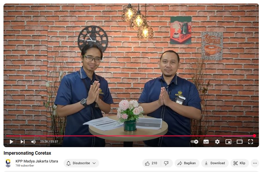 Kantor Pelayanan Pajak (KPP) Madya Jakarta Utara merilis siniar baru menyambut Coretax DJP dengan tajuk “Impersonating Coretax” di akun Youtube KPP Madya Jakarta Utara (Selasa, 24/12).
