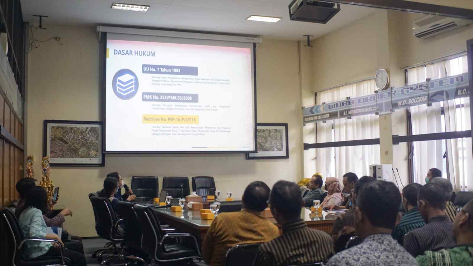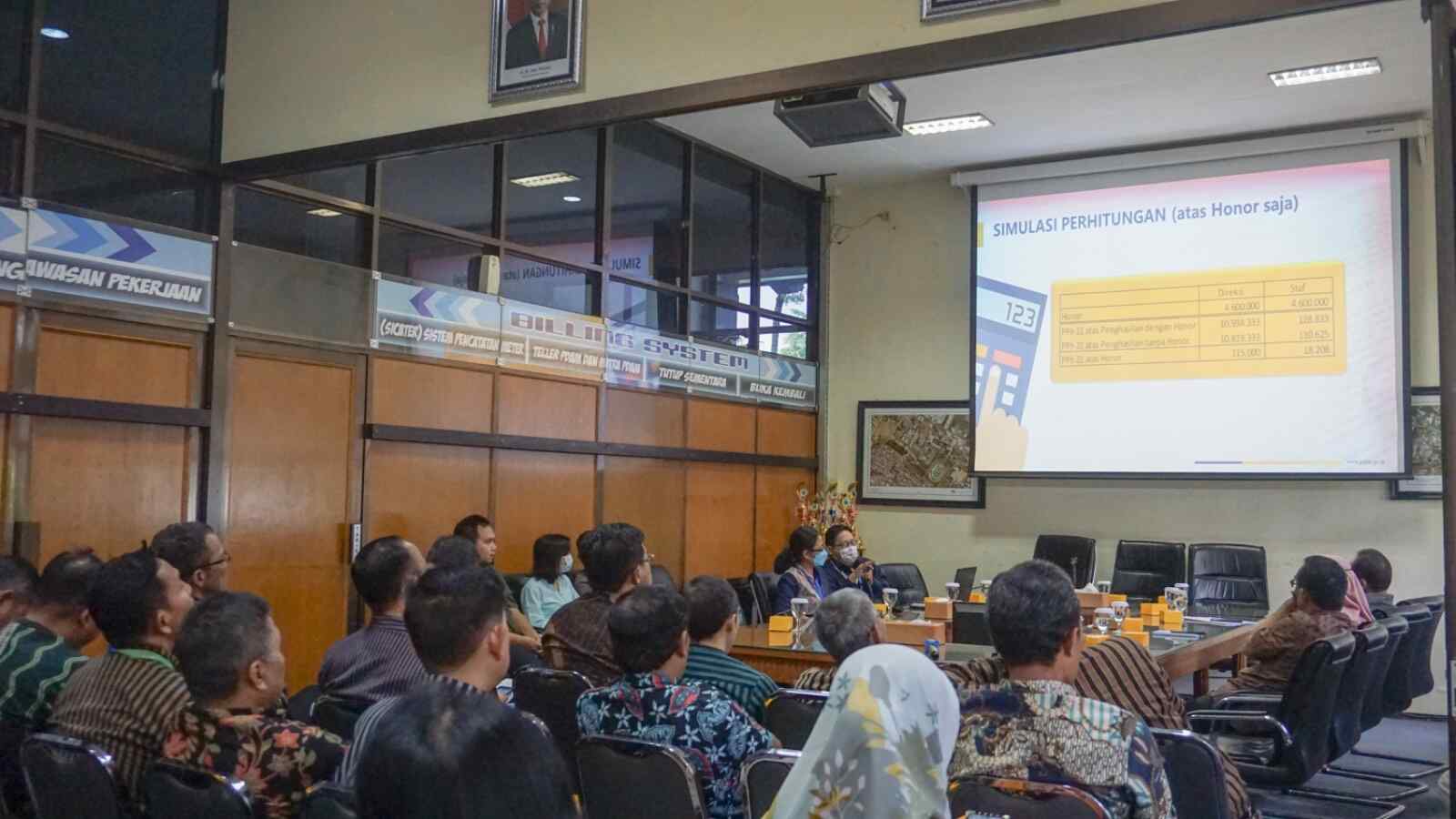 Kantor Pelayanan Pajak (KPP) Madya Malang melaksanakan sosialisasi perhitungan Pajak Penghasilan (PPh) Pasal 21 kepada para pegawai Perusahaan Umum Daerah (Perumda) Air Minum Tugu Tirta Kota Malang di Aula Perumda Air Minum Tugu Tirta Kota Malang, Jalan Terusan Danau Sentani No.100, Madyopuro, Kecamatan Kedungkandang, Kota Malang (Kamis, 25/5).