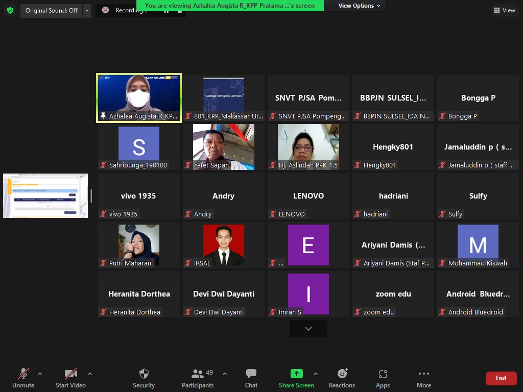Kantor Pelayanan Pajak (KPP) Pratama Makassar Utara mengadakan Kelas Pajak dengan materi Surat Pemberitahuan (SPT) Tahunan untuk Orang Pribadi Karyawan secara daring melalui Zoom Cloud Meeting di Studio Makuta KPP Pratama Makassar (Kamis, 13/01).