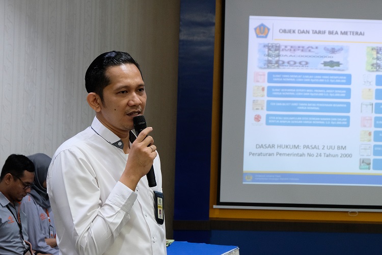 Bekerja sama dengan Kantor Pos Pemeriksa Mamuju, KPP Pratama Mamuju memberikan pemahaman terkait pengenaan Bea Materai palsu. Antusiasme para peserta sosialisasi sangat terlihat dengan banyaknya pertanyaan yang dilontarkan. Tujuan dari adanya kegiatan ini adalah agara para pelaku usaha lebih memahami bagaimana penggunaan dan pengenaan Bea Materai serta mampu mendeteksi dan mengetahui Bea Materai palsu secara mandiri.