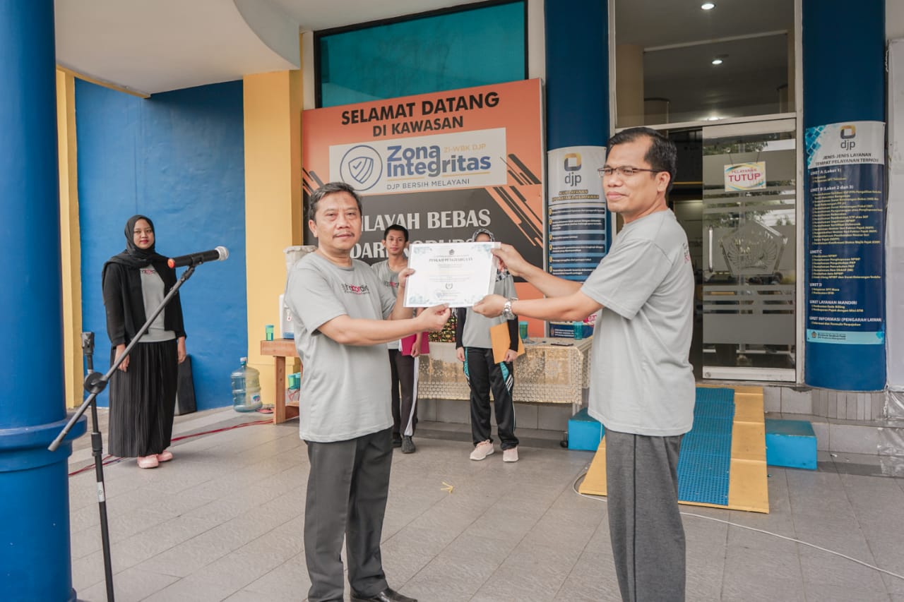 Kegiatan yang sejalan dengan jargon baru Direktorat Jenderal Pajak (DJP) yang berbunyi “Tanpa Korupsi, DJP Kuat Indonesia Maju” tersebut diisi dengan senam Zumba dan Apel Pagi serta penyerahan piagam penghargaan ZI-WBK.