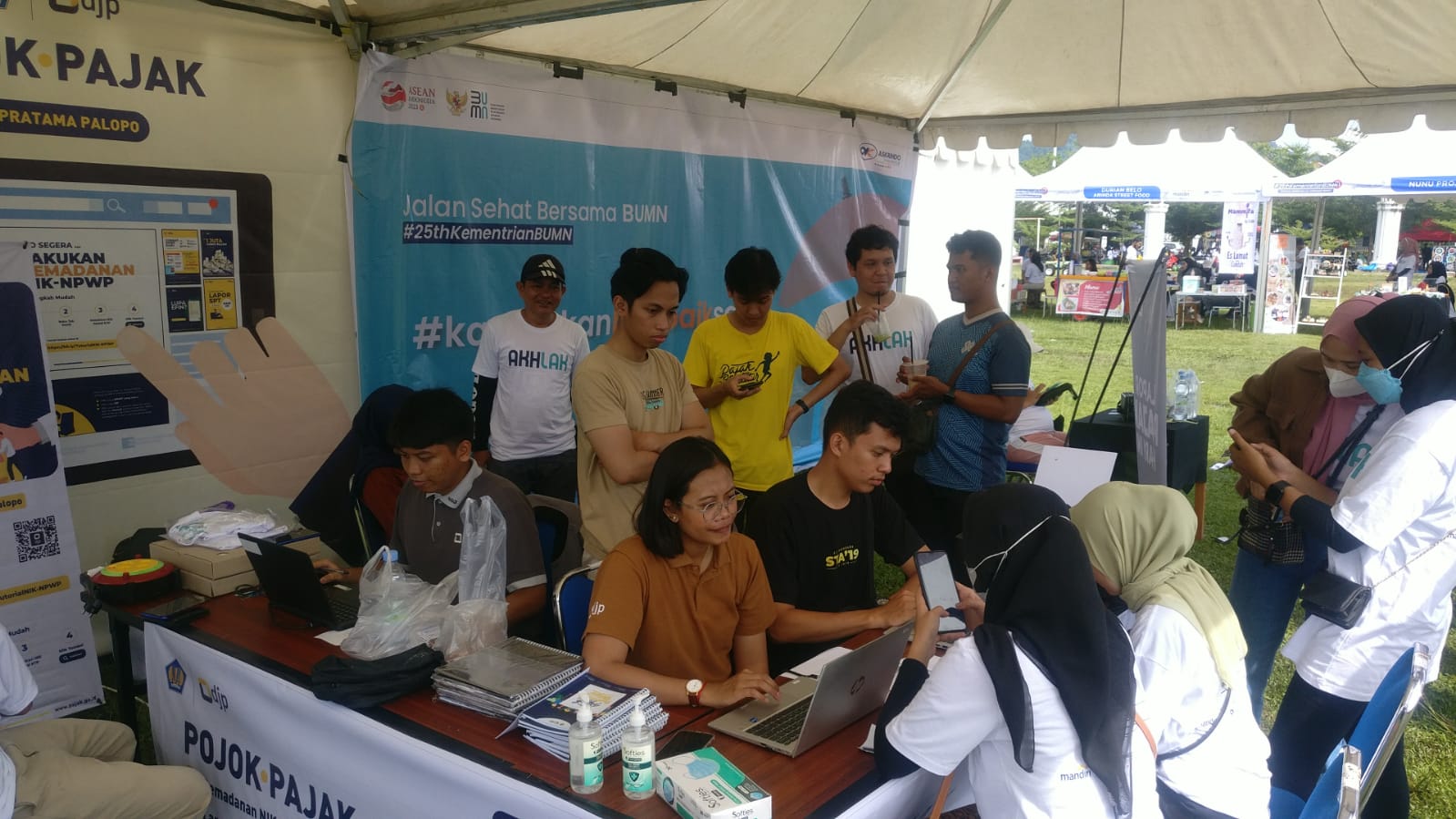 Kantor Pelayanan Pajak (KPP) Pratama Palopo menyelenggarakan pojok pajak di Lapangan Pancasila, Kota Palopo (Minggu, 19/3). Kegiatan Pojok Pajak ini dilakukan bersamaan dengan kegiatan Jalan Sehat Badan Usaha Milik Negara (BUMN). Pojok Pajak KPP Pratama Palopo dibuka mulai pukul 06.00 WITA hingga 11.00 WITA.