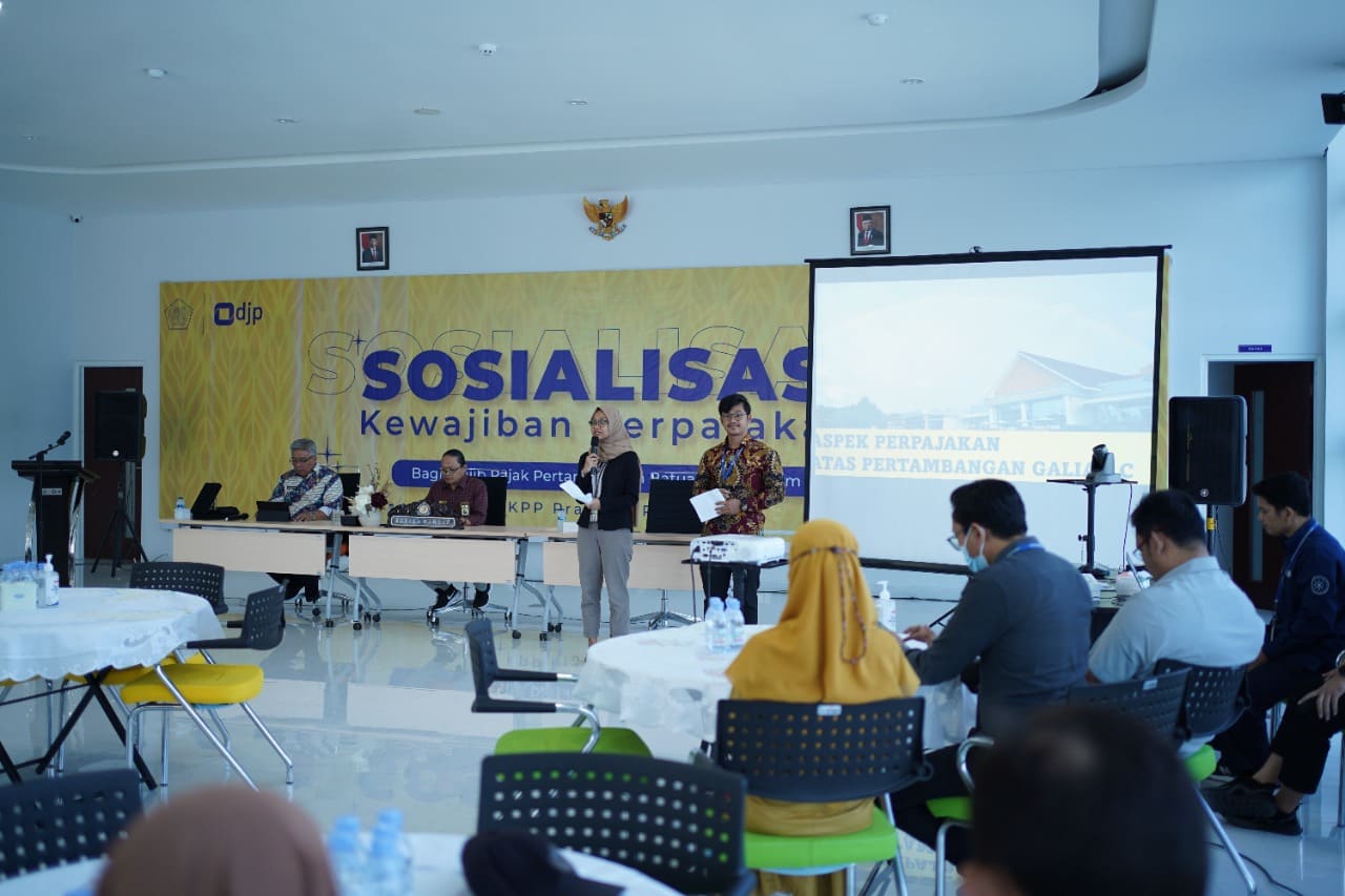 Tim penyuluh pajak Kantor Pelayanan Pajak (KPP) Pratama Palu dan Badan Pendapatan Daerah (Bapenda) Donggala bekerja sama melaksanakan kegiatan sosialisasi pada wajib pajak di bidang pertambangan terkait pajak pusat dan pajak daerah (Kamis, 9/6). Acara ini dilangsungkan secara tatap muka di ruang aula KPP Pratama Palu, Kota Palu.