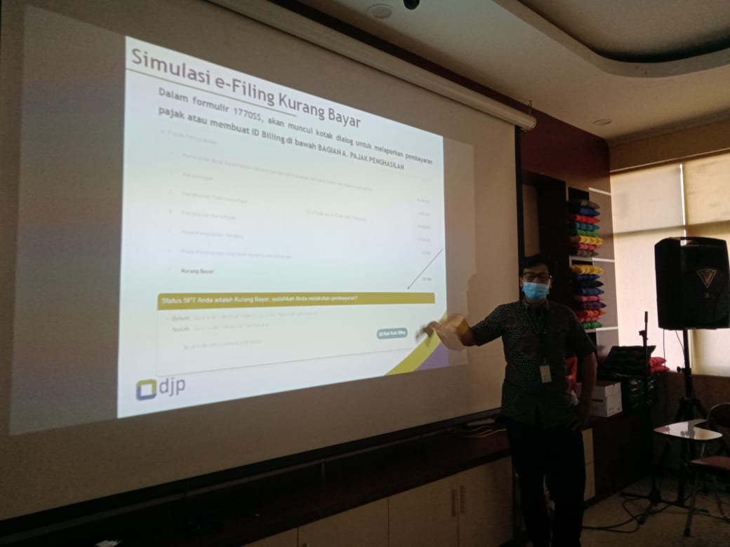 Narasumber kegiatan yang yang merupakan pegawai KPP Pratama Pandeglang, menyampaikan materi tentang tata cara pelaporan SPT Tahunan. Selain itu, para relawan pajak juga diajak narasumber untuk simulasi pengisian SPT dengan e-Filing. Materi tentang keterampilan berkomunikasi serta pemahaman seputar alur pelayanan wajib pajak juga diberikan pada acara pembekalan ini.