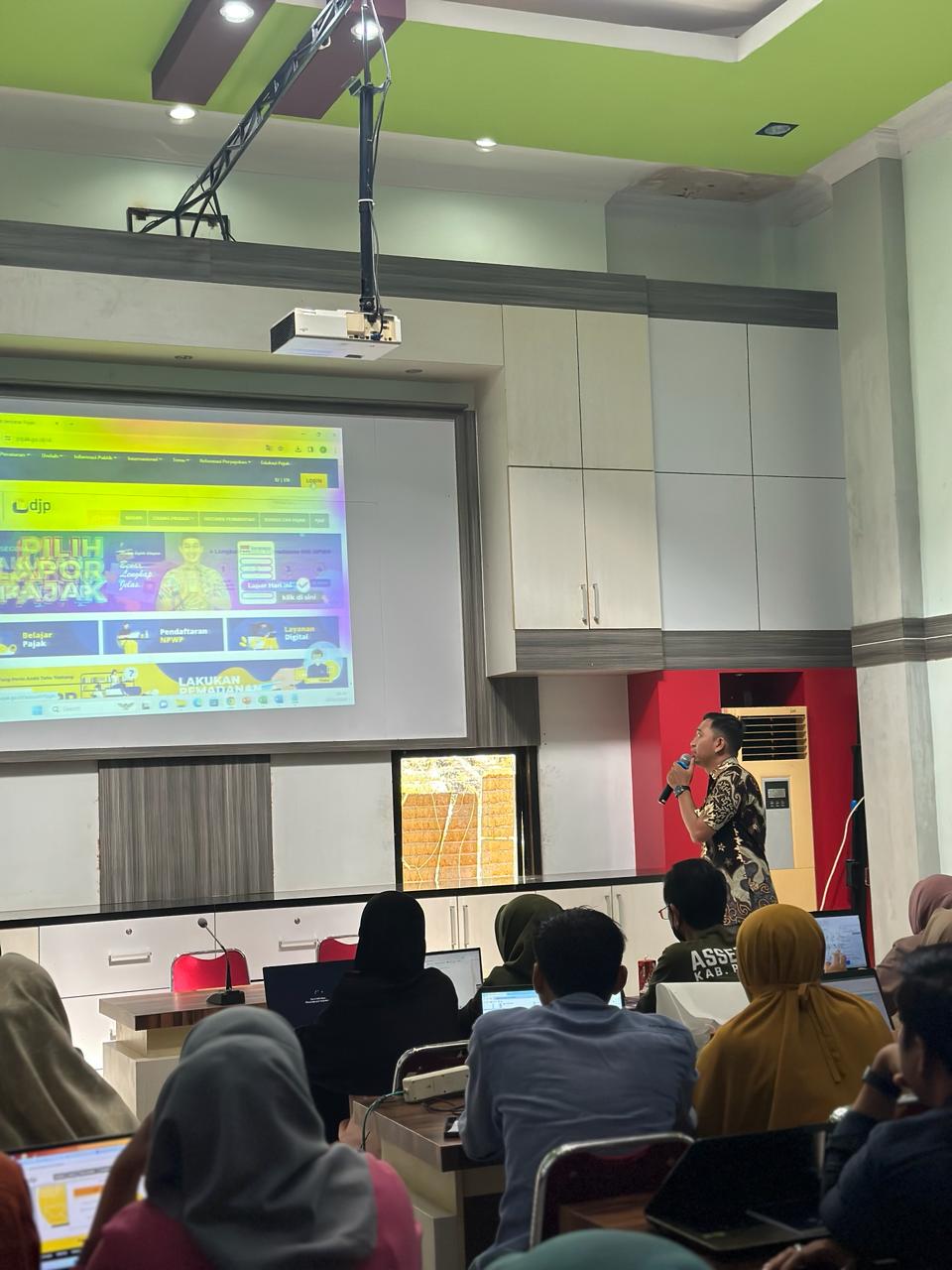 Kantor Pelayanan Pajak (KPP) Pratama Parepare bersama Kantor Pelayanan, Penyuluhan dan Konsultasi Perpajakan (KP2KP) Pinrang melakukan kegiatan Bimbingan Teknis Pembuatan Bukti Potong A1/A2 e-Bupot Instansi Pemerintah dan Sosialisasi PP 58 tahun 2023 yang berlangsung di Aula Dinas Perindustrian, Perdagangan, ESDM Kabupaten Pinrang dan dihadiri oleh seluruh Bendahara Pemerintah Instansi Vertikal di Kabupaten Pinrang (Kamis, 25/1).