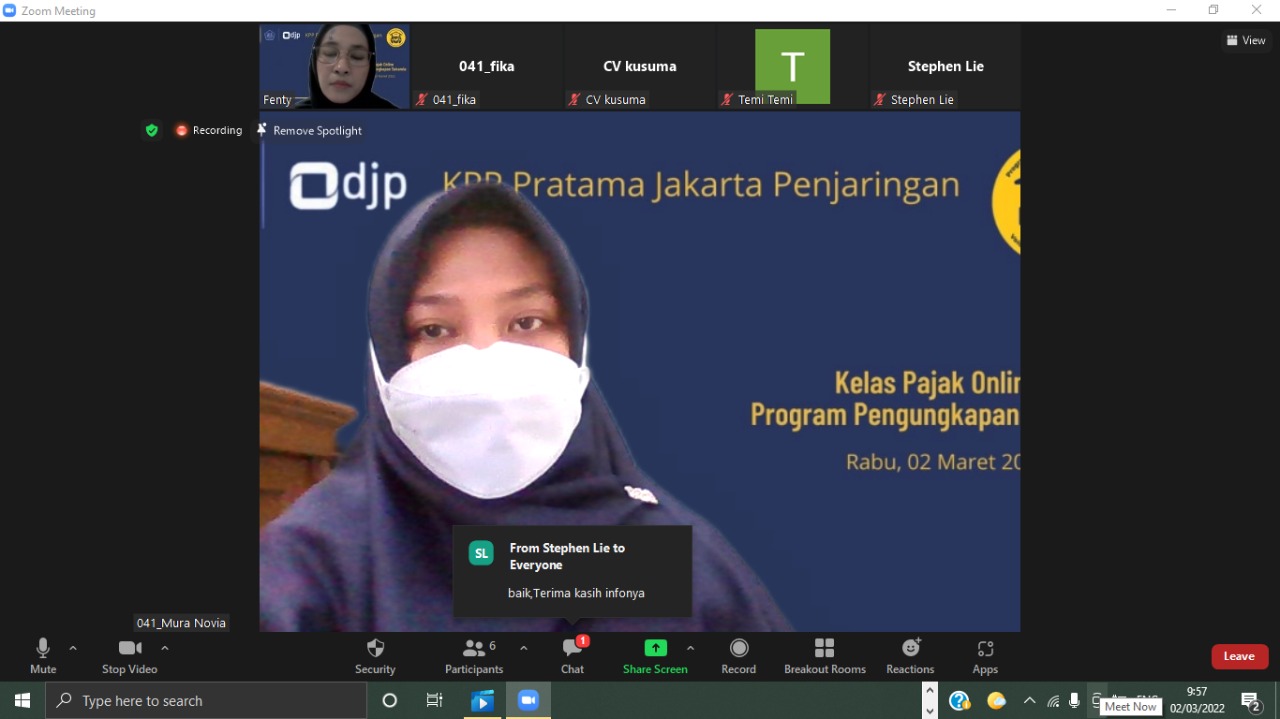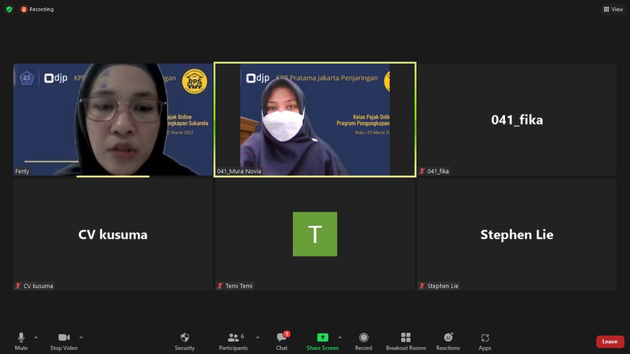 Kantor Pelayanan Pajak (KPP) Pratama Jakarta Penjaringan mengadakan kelas pajak terkait Program Pengungkapan Sukarela (PPS) di aula KPP Pratama Jakarta Penjaringan (Rabu, 2/3). Kelas pajak dilaksanakan setiap Rabu. Kali ini materi disampaikan Fungsional Penyuluh Pajak Mura Novia.