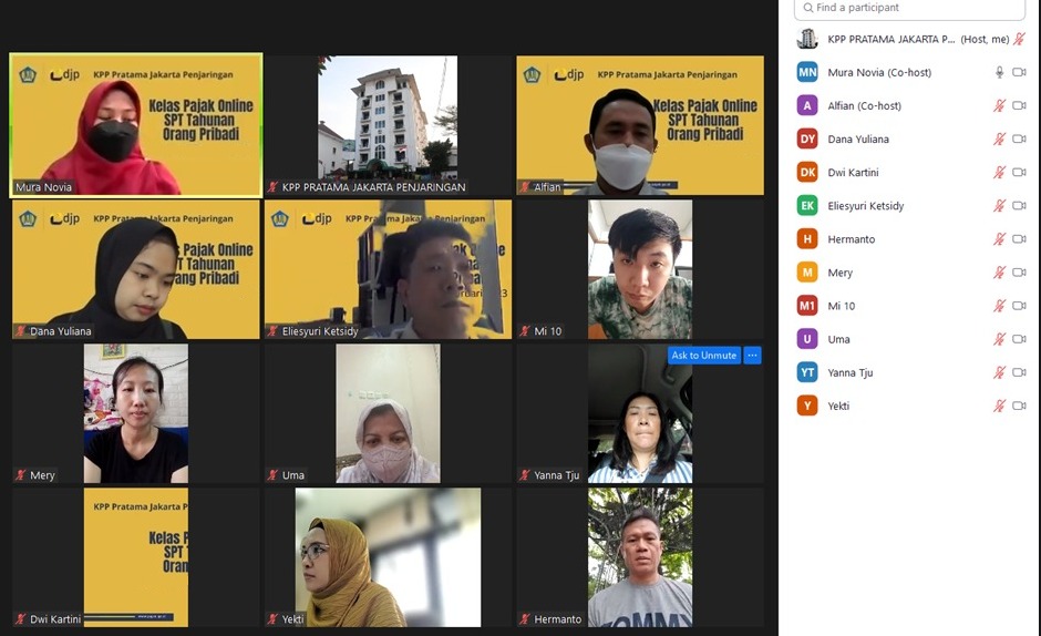 Kantor Pelayanan Pajak (KPP) Pratama Jakarta Penjaringan mengadakan kelas pajak terkait SPT Tahunan melalui zoom (Jumat, 17/2). Kelas pajak dihadiri dua belas wajib pajak terdaftar di KPP Pratama Jakarta Penjaringan. Kegiatan dibuka Fungsional Penyuluh Pajak KPP Pratama Penjaringan Oppie. Materi dipaparkan Alfian Fungsional Penyuluh KPP Pratama Jakarta Penjaringan. Materi yang disampaikan mengenai SPT Tahunan Orang Pribadi Tahun Pajak 2022 sudah dapat dilaporkan sejak awal Januari 2023 hingga akhir Maret 2023. Pengisian SPT Tahunan OP secara online dapat dilakukan dengan mengakses laman pajak.go.id. Ada 3 jenis SPT Tahunan OP, yaitu: