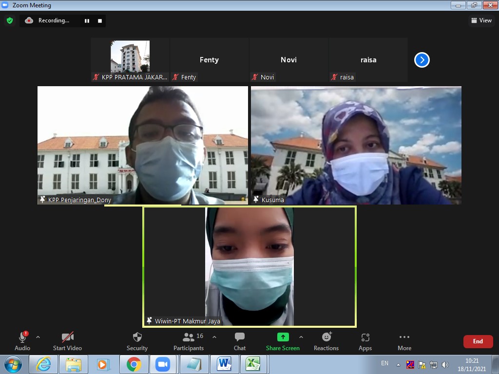 Kantor Pelayanan Pajak (KPP) Pratama Jakarta Penjaringan melaksanakan sosialisasi Prepopulated PEB dan CK-1 tembakau secara daring, Jakarta Utara (Kamis, 18/11). Materi disampaikan oleh Dony Katra Lubis, Penyuluh Pajak KPP Pratama Jakarta Penjaringan. Kegiatan ini diikuti oleh 11 wajib pajak.