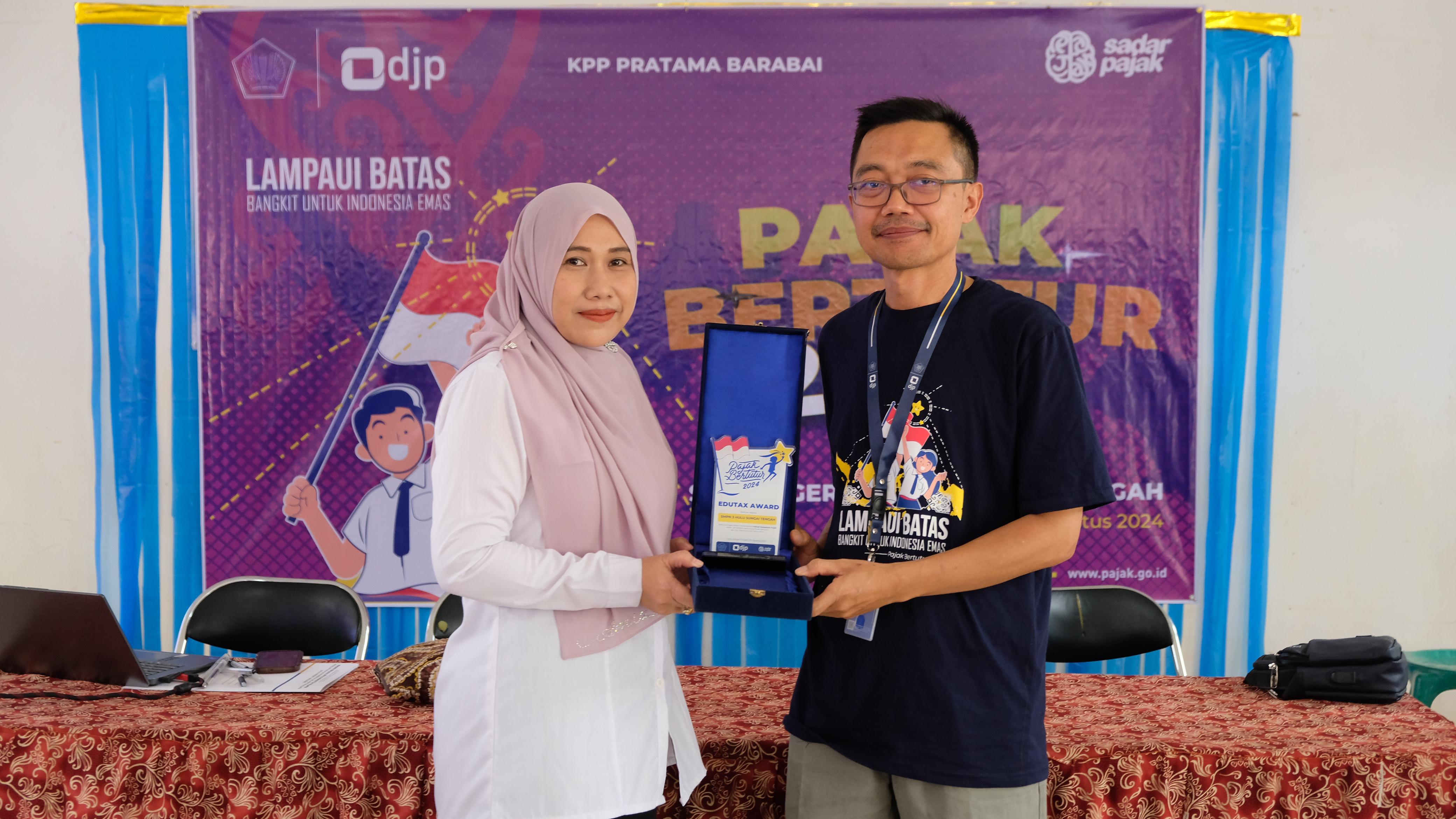 Kantor Pelayanan Pajak (KPP) Pratama Barabai menggelar kegiatan Pajak Bertutur 2024 serentak di beberapa sekolah di wilayah Barabai, Hulu Sungai Tengah (Rabu,7/8). Beberapa sekolah dipilih untuk menjadi tempat diselenggarakannya Pajak Bertutur 2024 di wilayah KPP Pratama Barabai antara lain Sekolah Menengah Kejuruan (SMK) Negeri 1 Barabai, Sekolah Menengah Pertama (SMP) Negeri 3 Hulu Sungai Tengah, dan Sekolah Dasar (SD) Negeri 2 Barabai Timur, yang dilaksanakan di tempat yang terpisah di masing-masing sekolah.