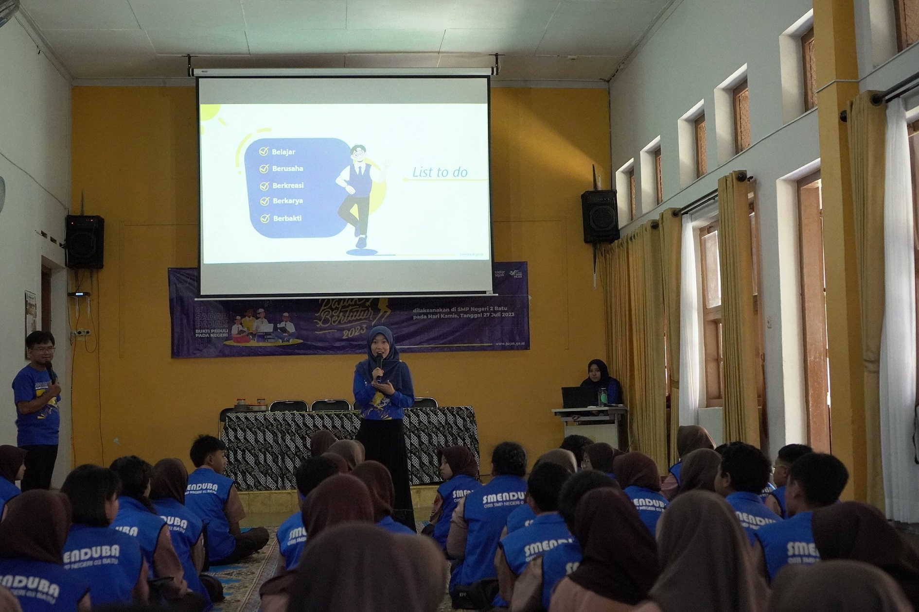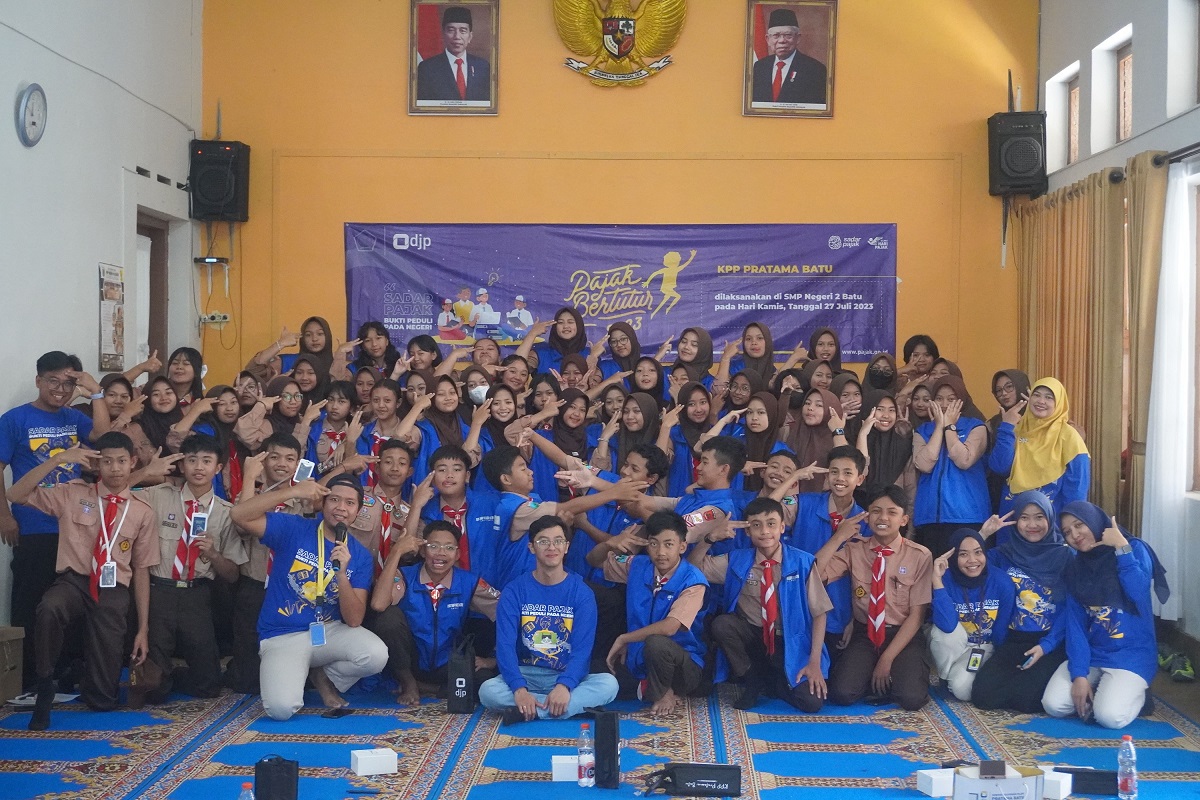 Kantor Pelayanan Pajak (KPP) Pratama Batu menggandeng Sekolah Menengah Pertama (SMP) Negeri 2 Batu untuk mengenalkan pajak kepada perwakilan siswa SMP Negeri 2 Batu (Kamis, 27/7). Kegiatan tersebut dikemas dalam acara Pajak Bertutur dengan tema "Sehari Mengenal Selamanya Bangga".