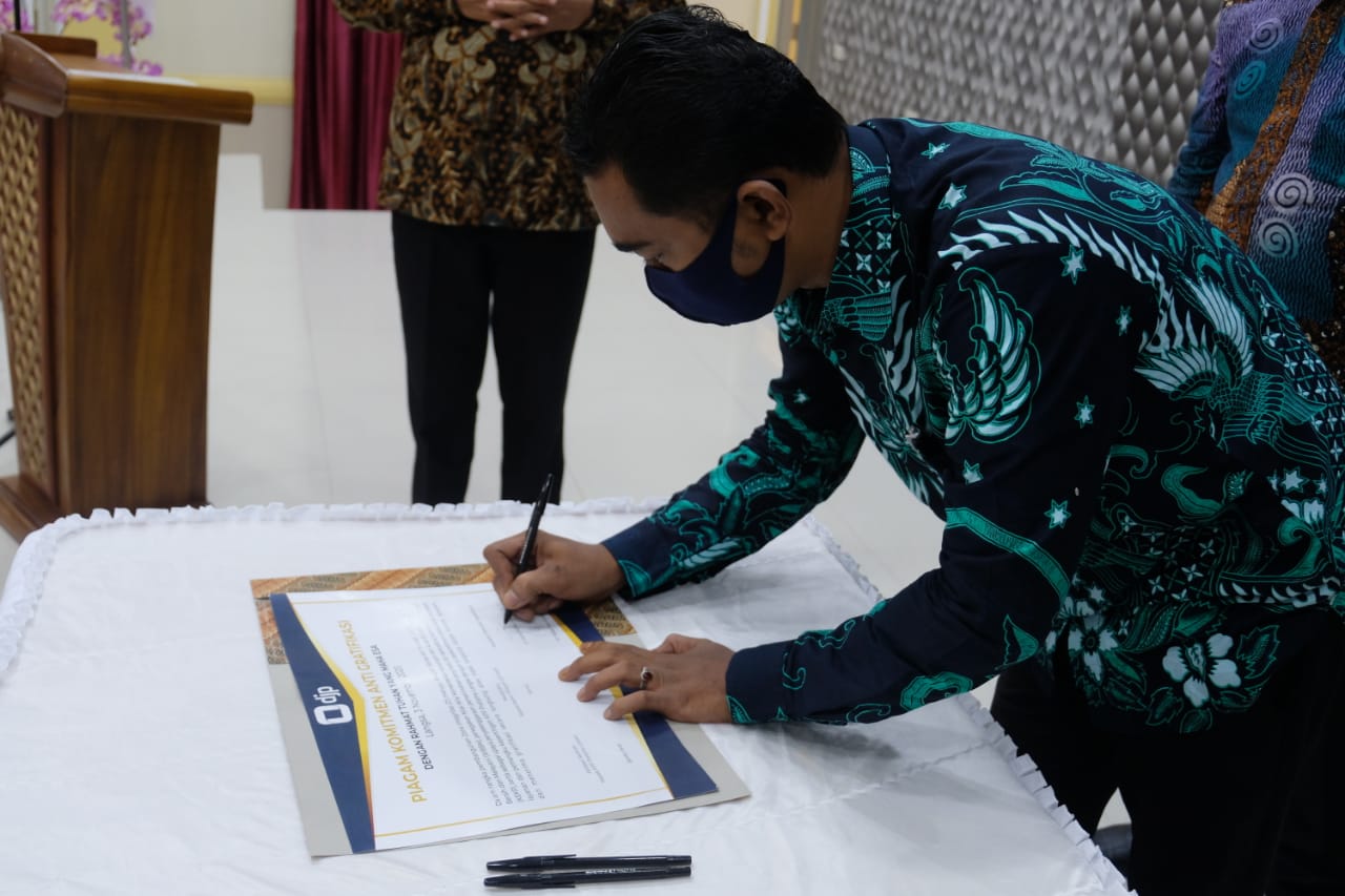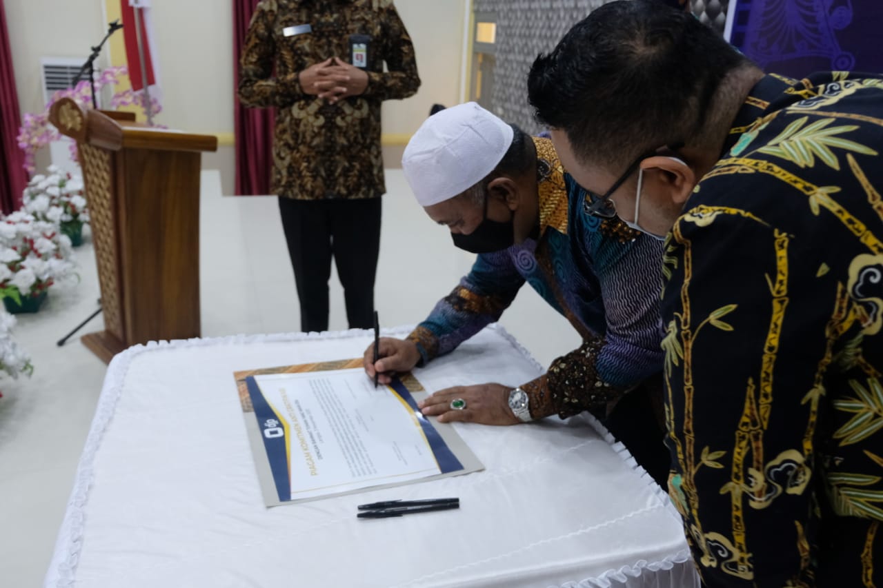 Kepala Kantor Wilayah DJP Aceh, Kepala KPP Pratama Langsa, dan dua orang perwakilan dari wajib pajak menandatangani piagam Komitmen Antigratifikasi dalam rangka membangun Zona Integritas menuju wilayah bebas dari korupsi (ZIWBK) di KPP Pratama Langsa.