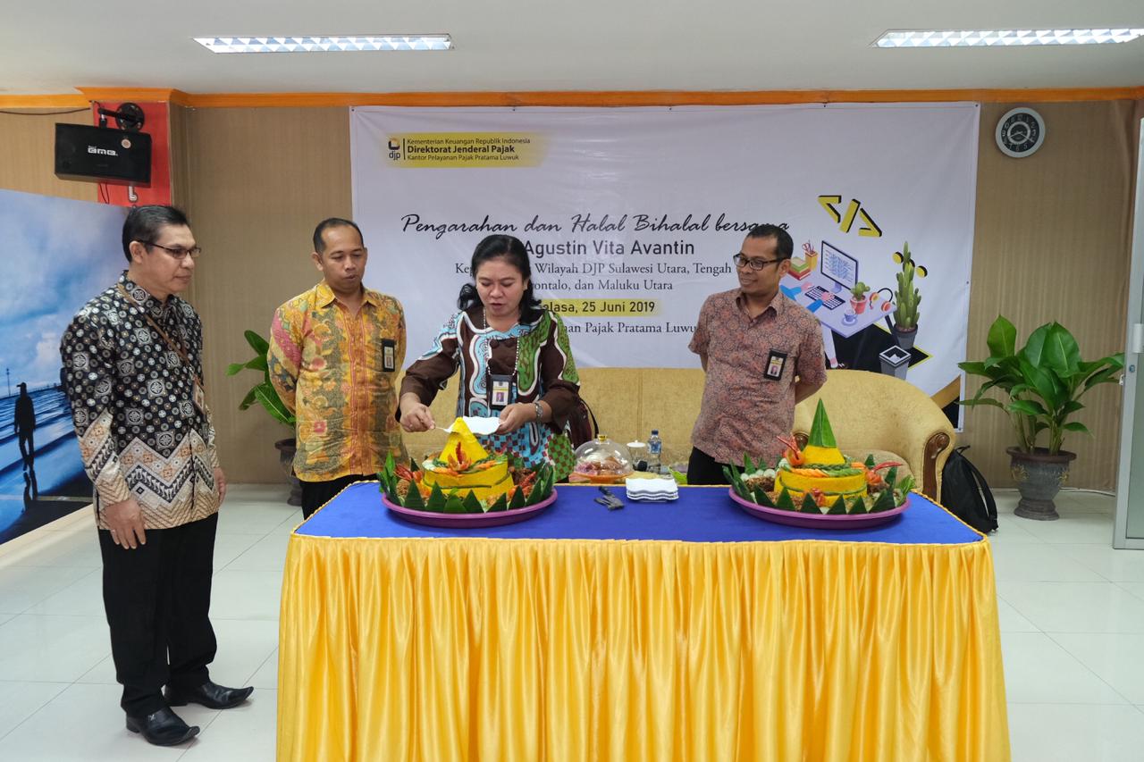 KPP Pratama Luwuk memotong tumpeng atas diperolehnya predikat Wilayah Bebas dari Korupsi (WBK) di lingkungan Kementerian Keuangan (Selasa, 25/6). Acara ini dihadiri oleh Kepala Kanwil DJP Sulawesi Utara, Tengah, Gorontalo dan Maluku Utara Agustin Vita Avantin.