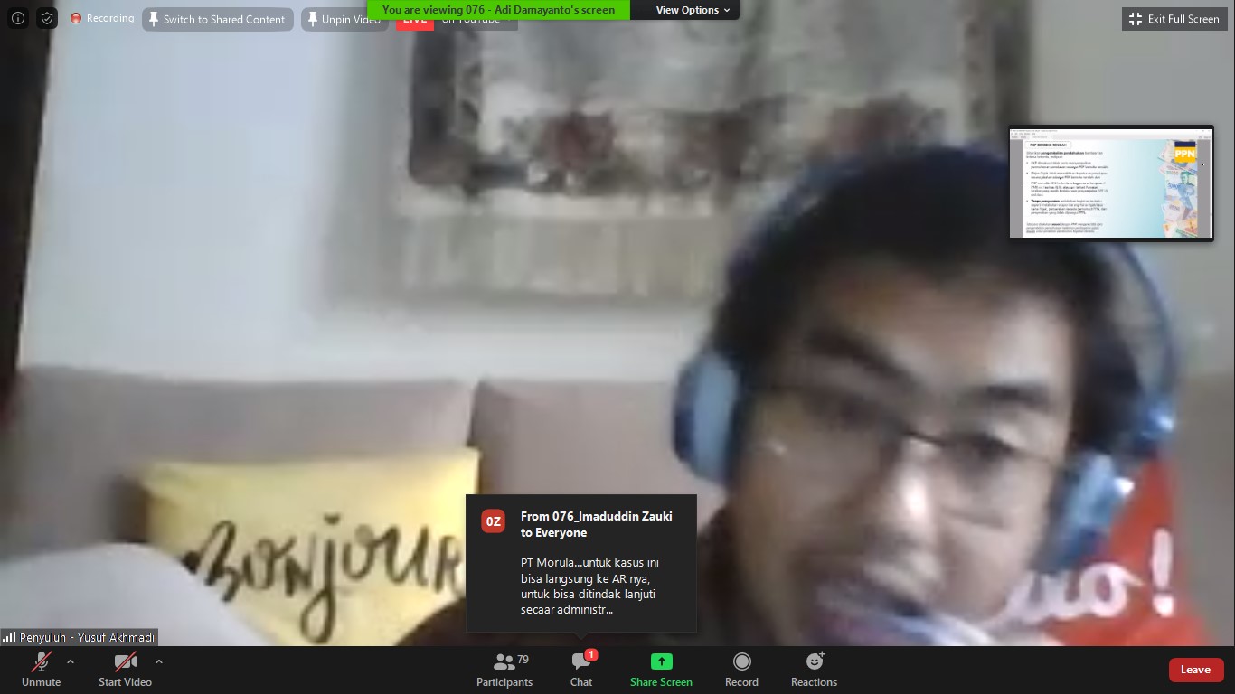 Sosialisasi ini disampaikan oleh Yusuf Akhmadi dan Imanuddin Zauki yang merupakan anggota Tim Penyuluhan Kanwil DJP Jakarta Pusat dan dipandu oleh Rahmawati Zahroh. Sosialisasi ini disampaikan kepada wajib pajak dengan tujuan agar pemberian Insentif Pajak dapat membantu wajib pajak dalam mempertahankan keberlangsungan usahanya yang terdampak pandemi Covid-19. Kegiatan ini berlangsung dengan baik dan lancar dan diakhiri dengan diskusi dan tanya jawab.