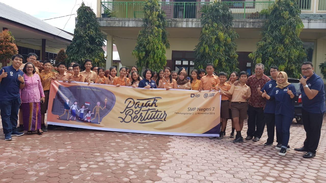KPP Pratama Pematang Siantar mengadakan kegiatan Pajak Bertutur di SD Negeri 122338 dan SMP Negeri 7 Pematang Siantar (Jumat, 22/11). Kegiatan Pajak Bertutur ini merupakan kegiatan tahunan Direktorat Jenderal Pajak (DJP) yang dilaksanakan secara serentak di seluruh unit kerja vertikal DJP.