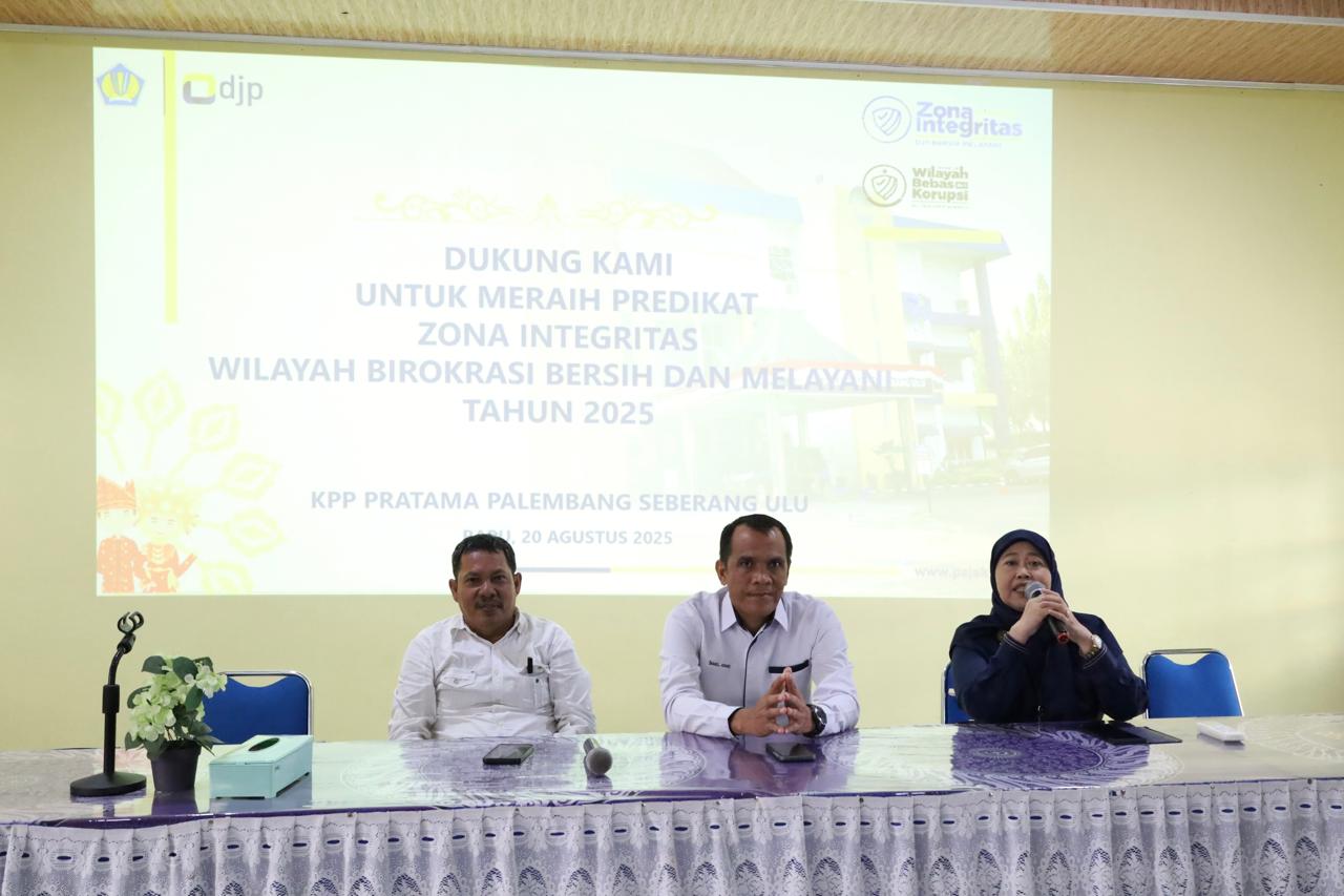 Tak terlewat, Yusrinah juga sampaikan agenda pembangunan Zona Integritas Wilayah Bebas Bersih dan Melayani (ZI-WBBM) yang sedang dilakukan oleh KPP Pratama Palembang Seberang Ulu.