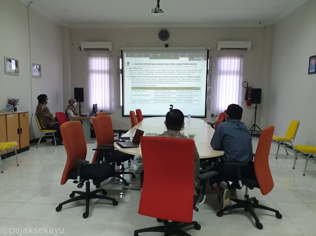 Kantor Pelayanan Pajak (KPP) Pratama Sekayu menggelar kegiatan sosialisasi Undang-Undang Harmonisasi Peraturan Perpajakan (UU HPP) secara daring di Ruang Rapat Sedulang Setudung, Musi Banyuasin (Kamis, 23/12).