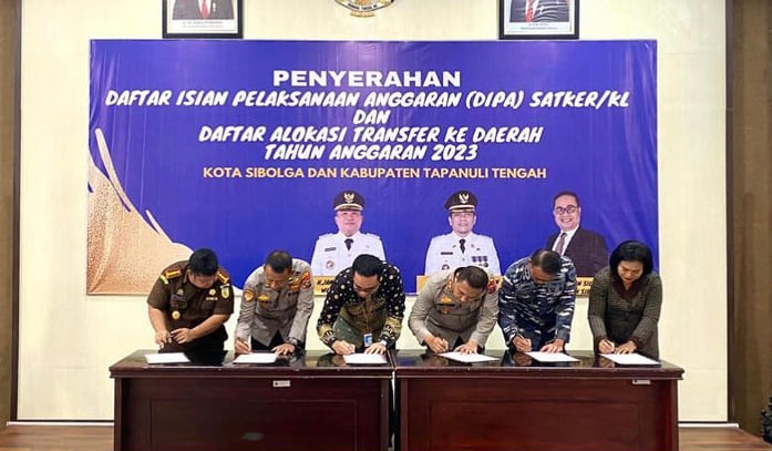 Terdapat 49 jumlah DIPA yang diserahkan dengan alokasi belanja negara TA 2023 untuk Kota Sibolga yaitu sebesar Rp1,03 triliun, yang terdiri dari belanja DIPA Kementerian Negara/Lembaga sebesar Rp553 milyar, dan Dana Transfer ke Daerah sebesar Rp476 milyar. Sedangkan untuk Kabupaten Tapanuli Tengah alokasi belanja negara TA 2023 sebesar Rp1,218 triliun, yang terdiri dari belanja DIPA Kementerian Negara/Lembaga sebesar Rp193 milyar, dan Dana Transfer ke Daerah sebesar Rp1,025 triliun.