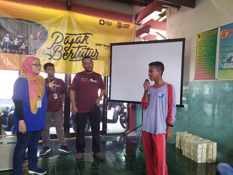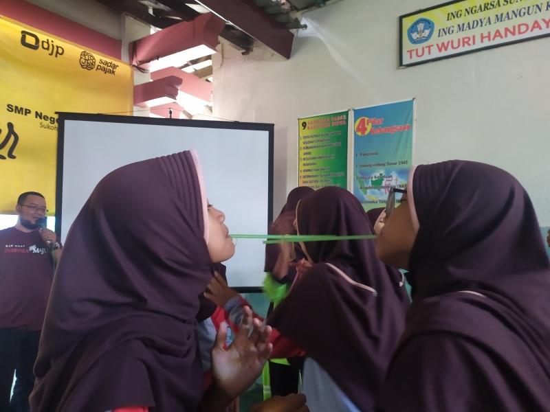KPP Pratama Sukoharjo melaksanakan kegiatan Pajak Bertutur (Patur) di SMP Negeri 2 Sukoharjo (Jumat, 22/11). Kegiatan Patur dilaksanakan untuk memberikan edukasi perpajakan kepada generasi muda dengan tujuan terciptanya generasi emas sadar pajak. KPP Pratama Sukoharjo merancang kegiatan edukasi yang menyenangkan dengan berbagai permainan di sela-sela materi.