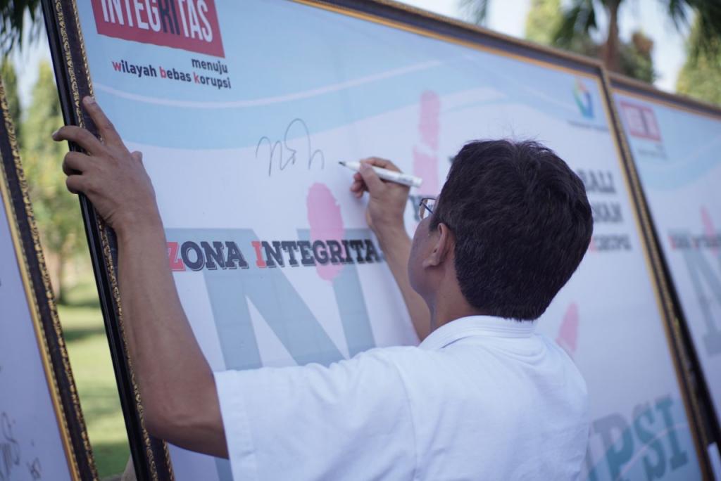KPP Pratama Tabanan mengikuti kegiatan pembangunan Zona Integritas se-Kanwil DJP Bali yang diselenggarakan di Lapangan Puputan Renon, Denpasar (12/3). Kegiatan tersebut merupakan bentuk iktikad baik antara pegawai dan wajib pajak untuk mewujudkan wilayah bebas korupsi. Puluhan pegawai dan wajib pajak mengikuti kegiatan tersebut. Kegiatan ini diharapkan dapat memupuk rasa integritas yang dimiliki oleh pegawai KPP Pratama Tabanan.
