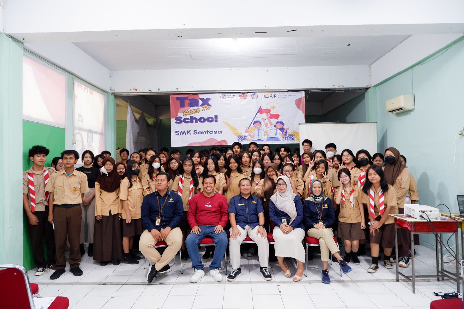 Kantor Pelayanan Pajak (KPP) Pratama Jakarta Tamansari bersama Organisasi Siswa Intra Sekolah (OSIS) Sekolah Menengah Kejuruan (SMK) Sentosa mengadakan kegiatan Tax Goes to School (TGTS) di Aula SMK Sentosa (Rabu, 18/9).