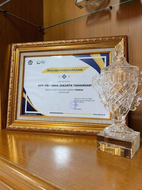 Kantor Pelayanan Pajak (KPP) Pratama Jakarta Tamansari meraih penghargaan Sebagai KPP Dengan Kinerja Terbaik 2021 di Lingkungan Kantor Wilayah DJP Jakarta Barat dalam rangkaian acara Rapat Koordinasi Daerah (Rakorda) Kantor Wilayah DJP Jakarta Barat di Aula Harmoni Kanwil DJP Jakarta Barat (Jumat, 14/1).