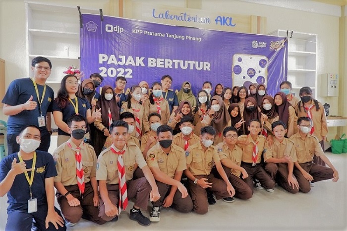 Kantor Pelayanan Pajak (KPP) Pratama Tanjung Pinang menyelenggarakan Pajak Bertutur 2022 di SMK Negeri 1 Tanjung Pinang, Kepulauan Riau (Kamis, 18/8). Pajak Bertutur kali ini mengusung tema “Generasi Sadar Pajak, Muda Berkreasi Membangun” dan tagline “Pajak Bertutur 2022: Sehari Mengenal, Selamanya Bangga”.