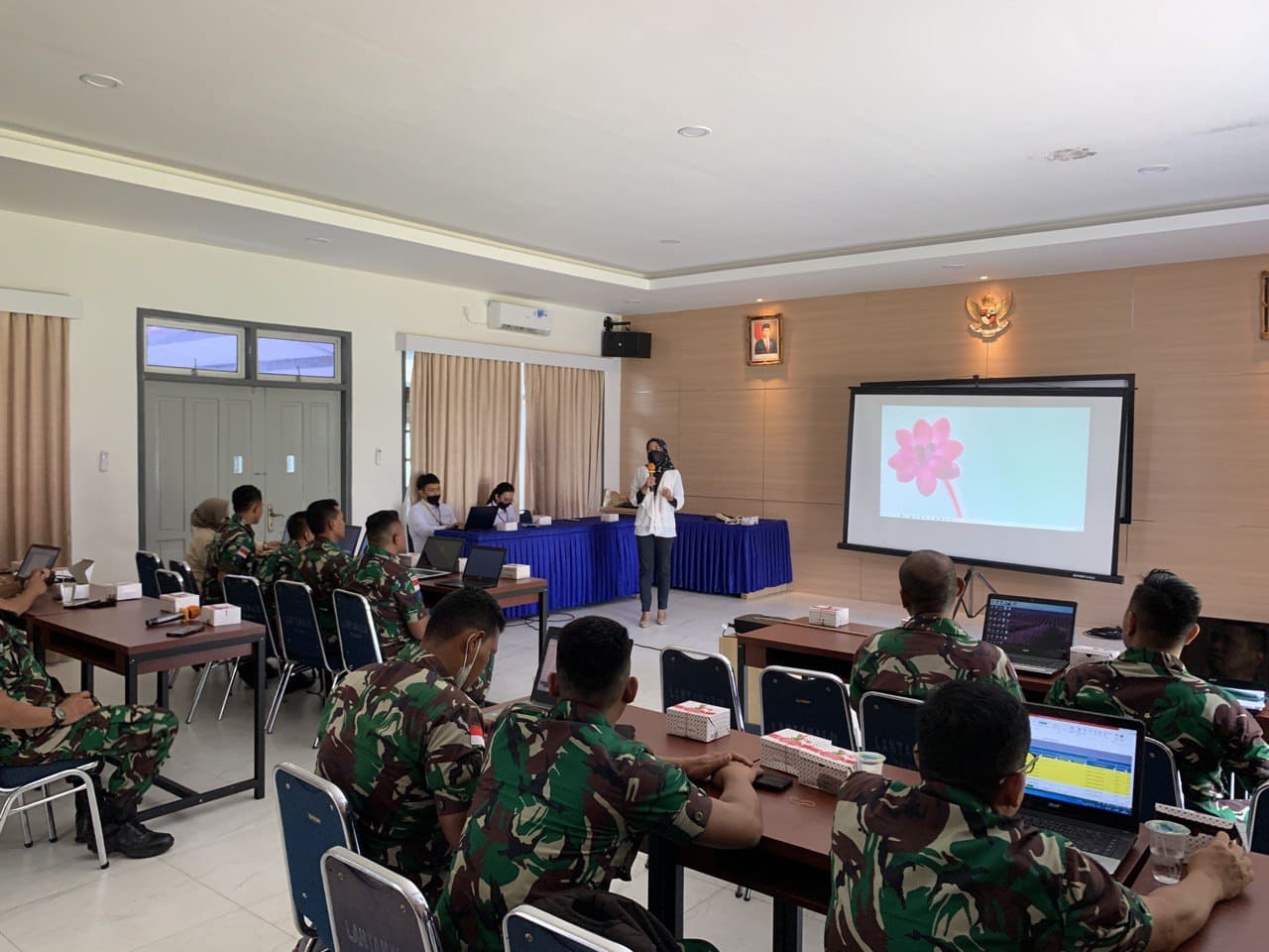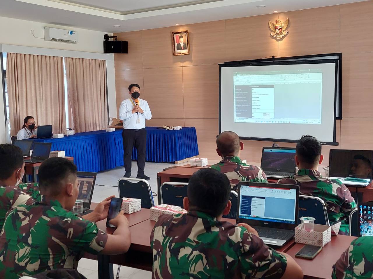 Kepala Seksi Pelayanan Anindita memberikan sambutan pada awal acara dan dilanjutkan dengan pemaparan materi oleh Asisten Penyuluh Pajak Syukrunaddawami. Syukru membahas berbagai hal perpajakan salah satunya tata cara penerbitan bukti potong bagi anggota TNI.